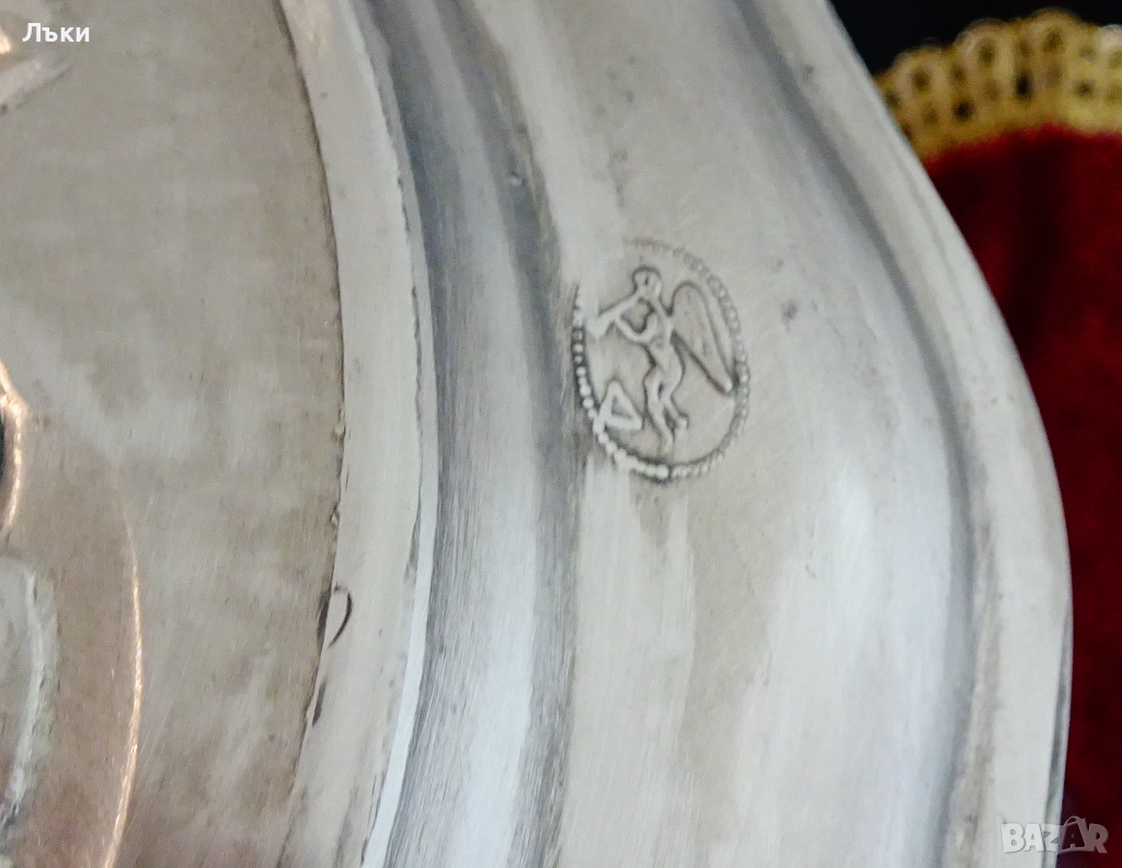 изработка от 95% калай и 5% сребро,маркирана от производителя.В центъра има