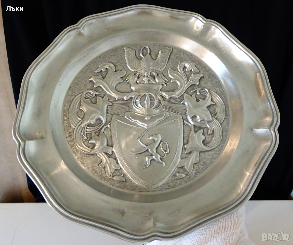 Стара немска калаена чиния за стена,пано,майсторска ръчна