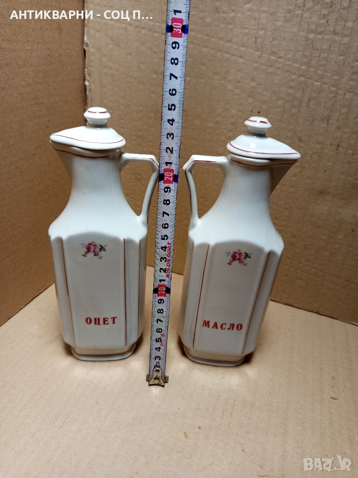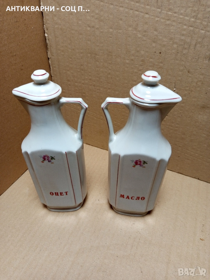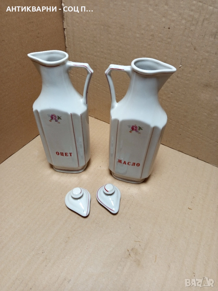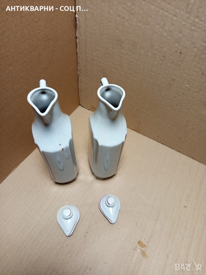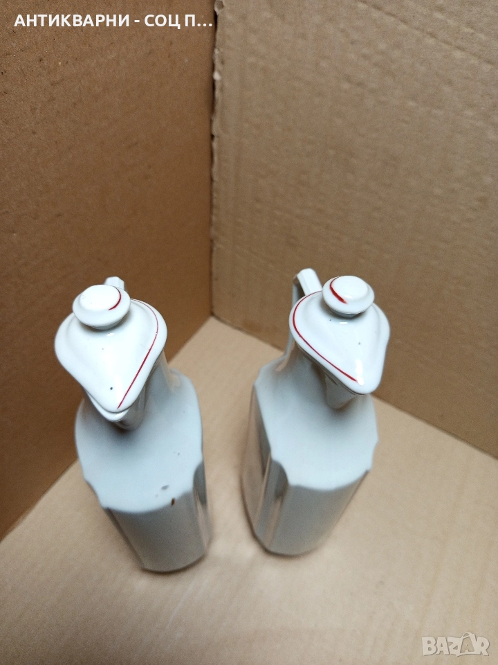 Комплект Соц Стари Български Порцеланови Шишета За Оцет Масло.