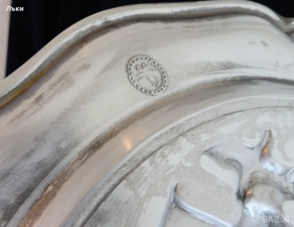 ръчна изработка от 95% калай и 5% сребро,маркирана от производителя.В центъра
