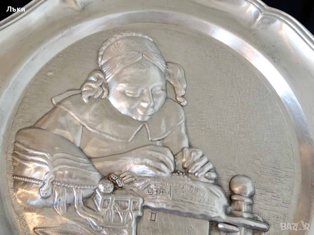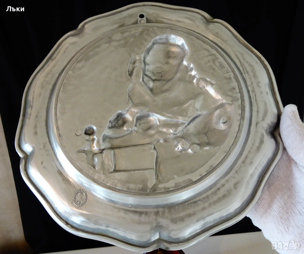 Стара немска калаена чиния,пано,релефна картина,майсторска