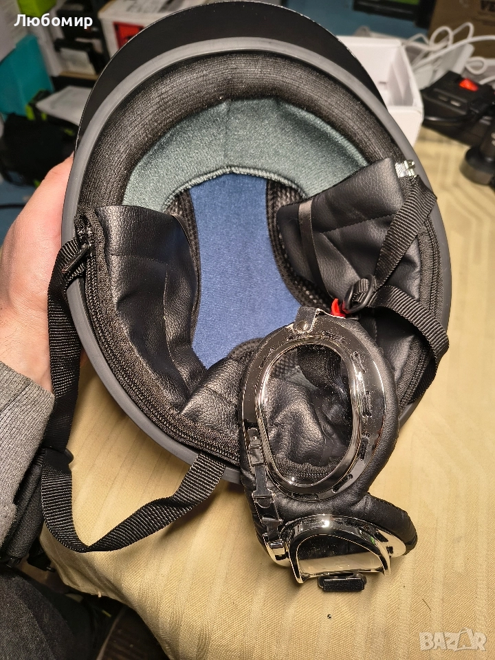 Ретро мотоциклетни полукаски за възрастни с авиаторски очила, мъжки и дамски модни каски