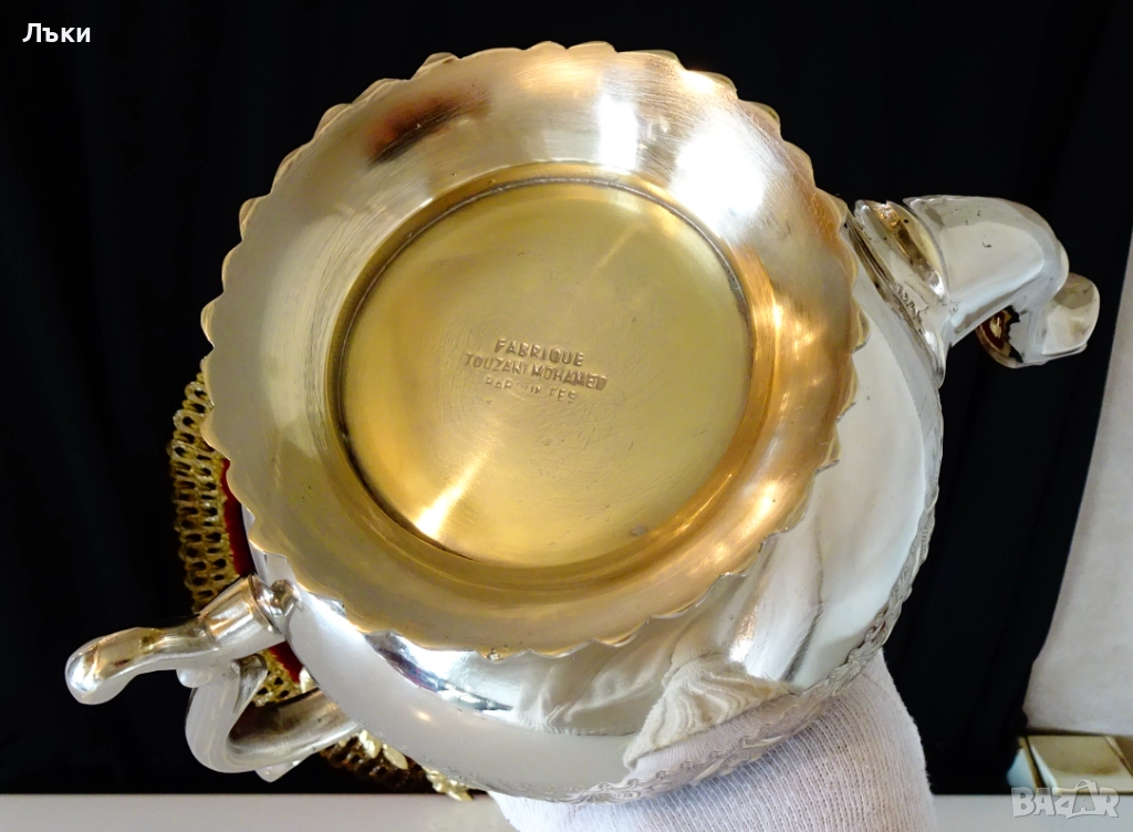качествен масивен бронз,дебело посребрен с висока проба сребро.Маркиран Fabrique Touzani Mohamed Barouk Fes.Декориран