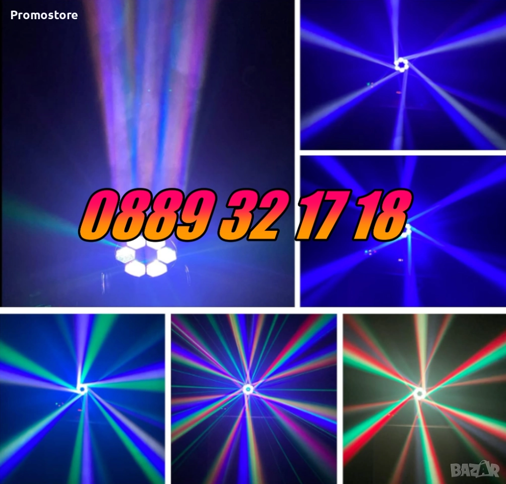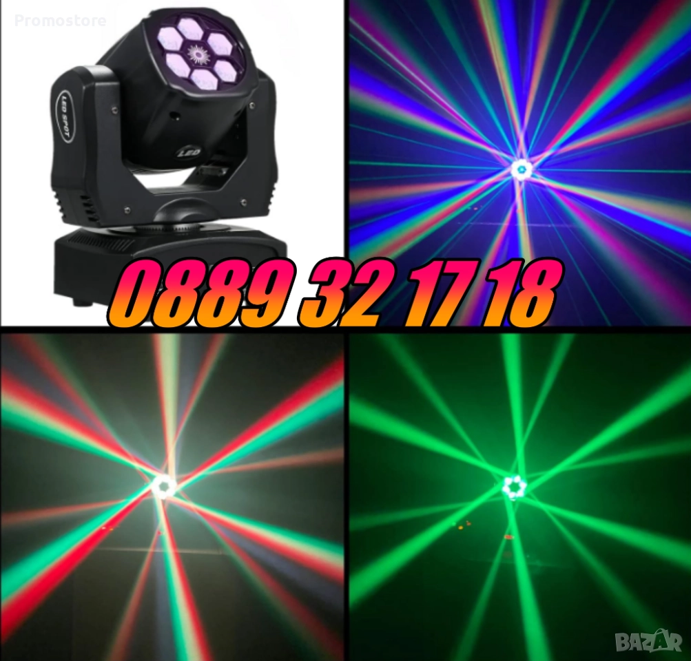 Дискотечен прожектор със 7 диода, прожектор движеща се глава, Moving Head с лазер