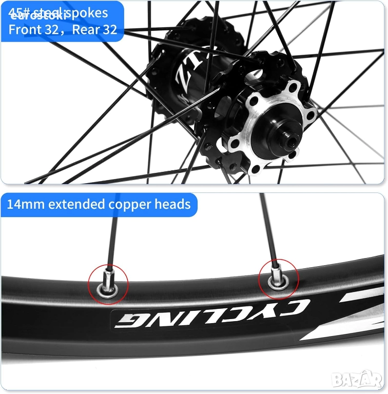 Проектирани със стоманени спици 45# с удължени медни глави (14 мм), дизайнът на колелото на велосипеда минимизира риска от скъсване на лентата.