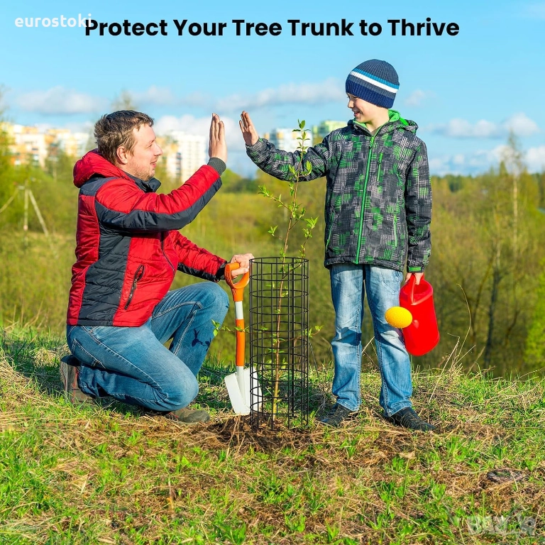 Трябва само да обградите ствола на растението със защитна мрежа за дървета, след това да заключите защитната мрежа с найлонова яка и накрая да поставите пирона в земята, за да фиксирате черупката, така че растителната защита да може да обгърне дървото по-здраво и да не страда дори от вятър и дъжд.