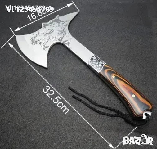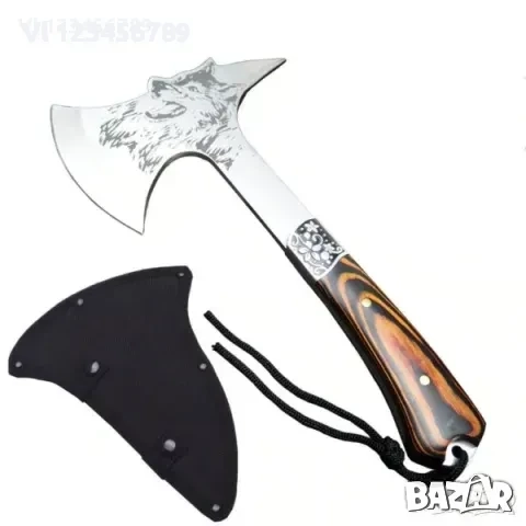 Руска компактна брадвичка с гравиран вълк Кемпинг Топор ст 65х13 → Обява 52777064