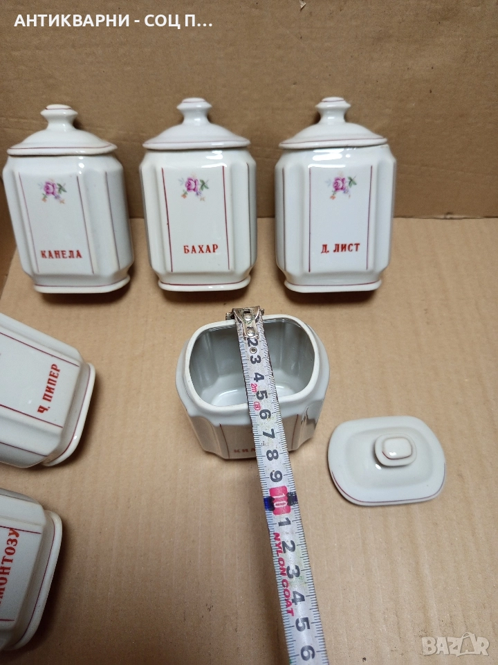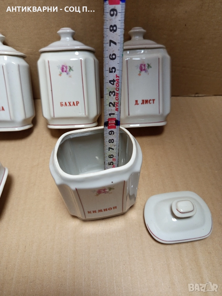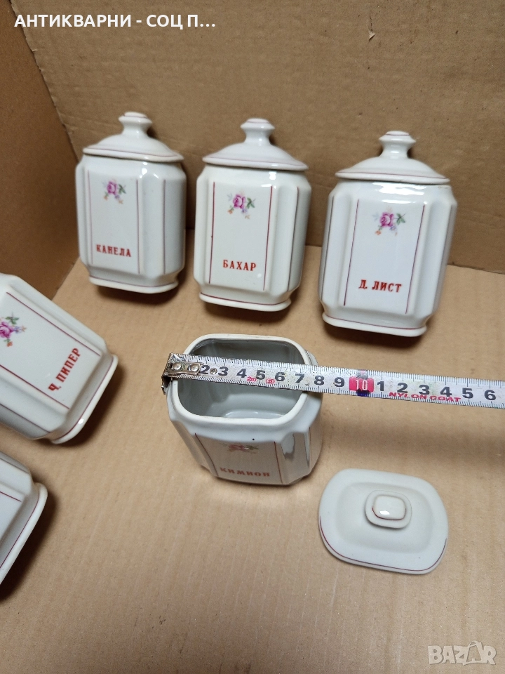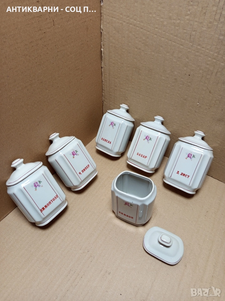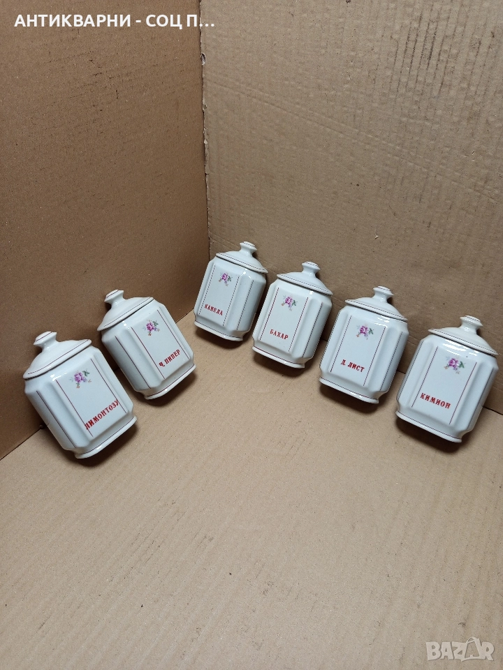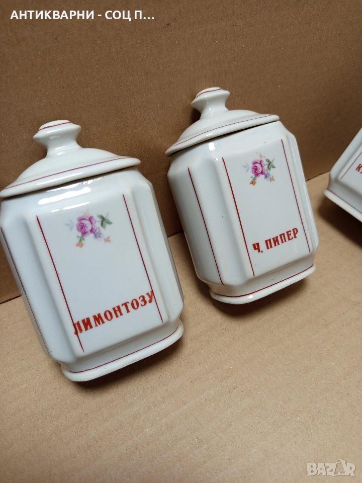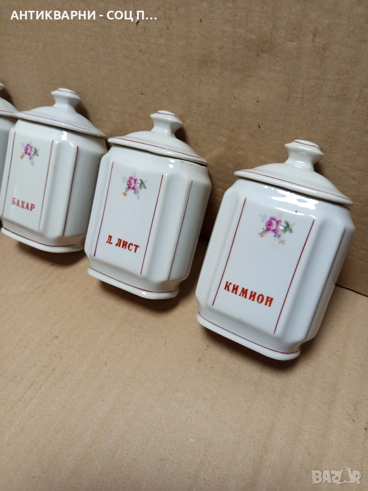 Комплект Соц Стари Български Порцеланови Буркани За Подправки.