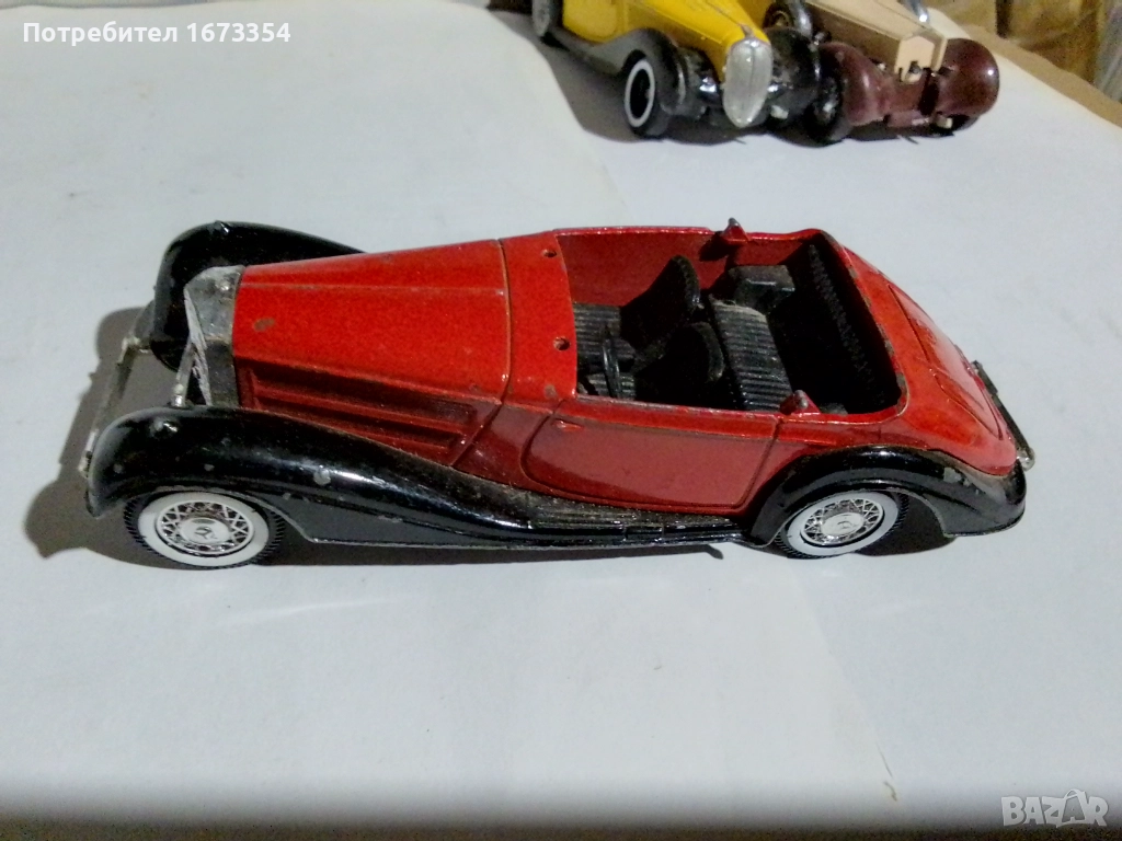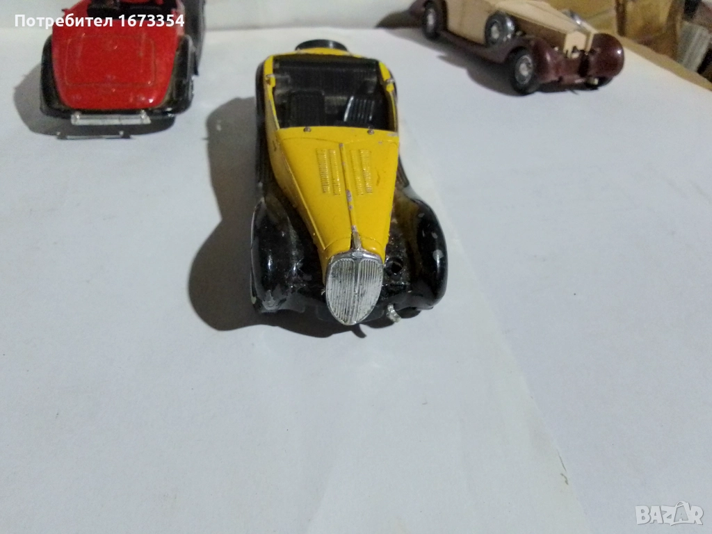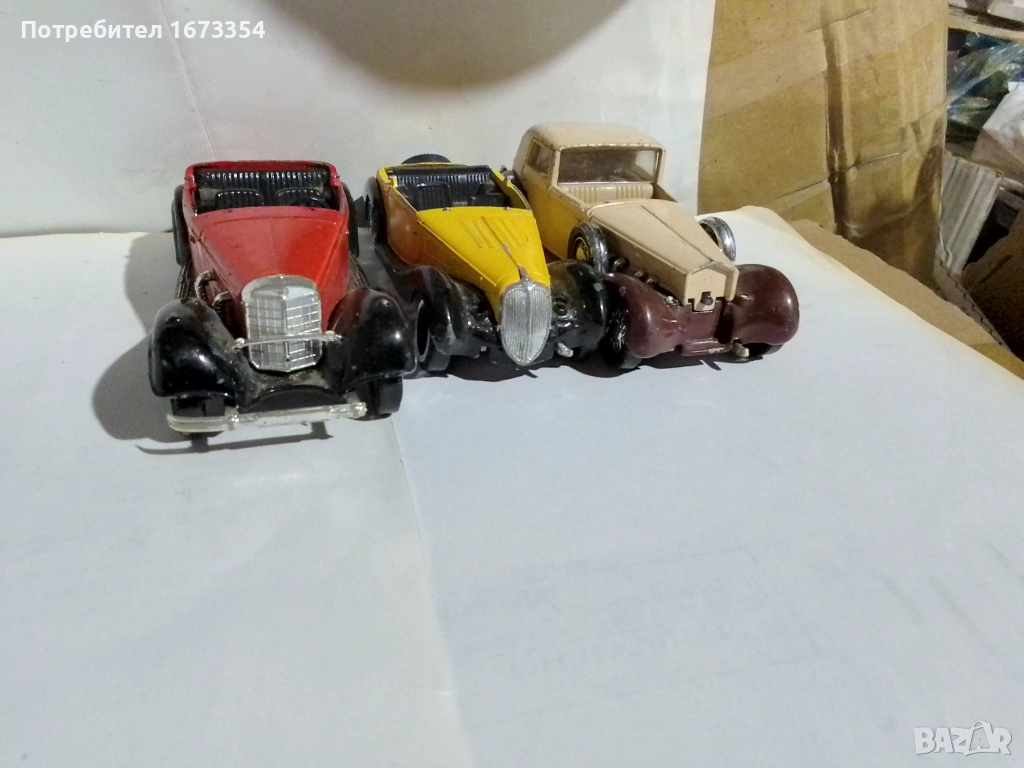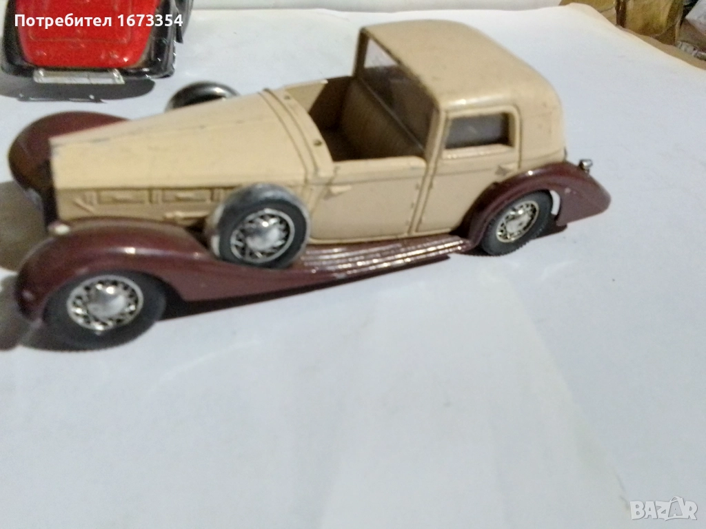 Модели на СОЛИДО 1) брой МЕРСЕДЕС 540 К( червен) с липси от1959 год.:2) 1 брой DELAHAYE. Figoni falaschi 1939 год с липси.:3)1 брой DELAGE. D8. 120 от 1939 год с липси и дефект, редки модели.Цена за трите 6.50.евро