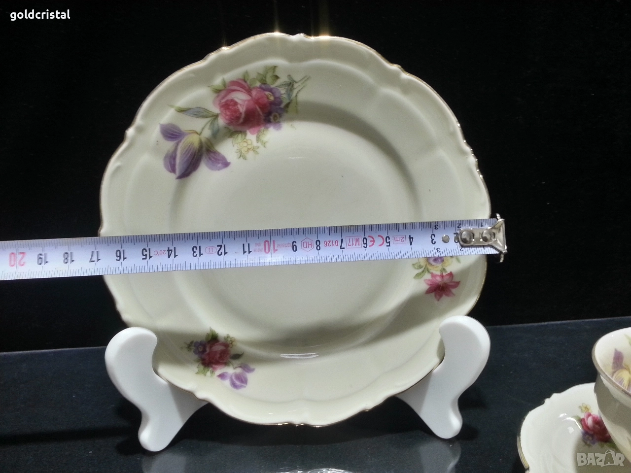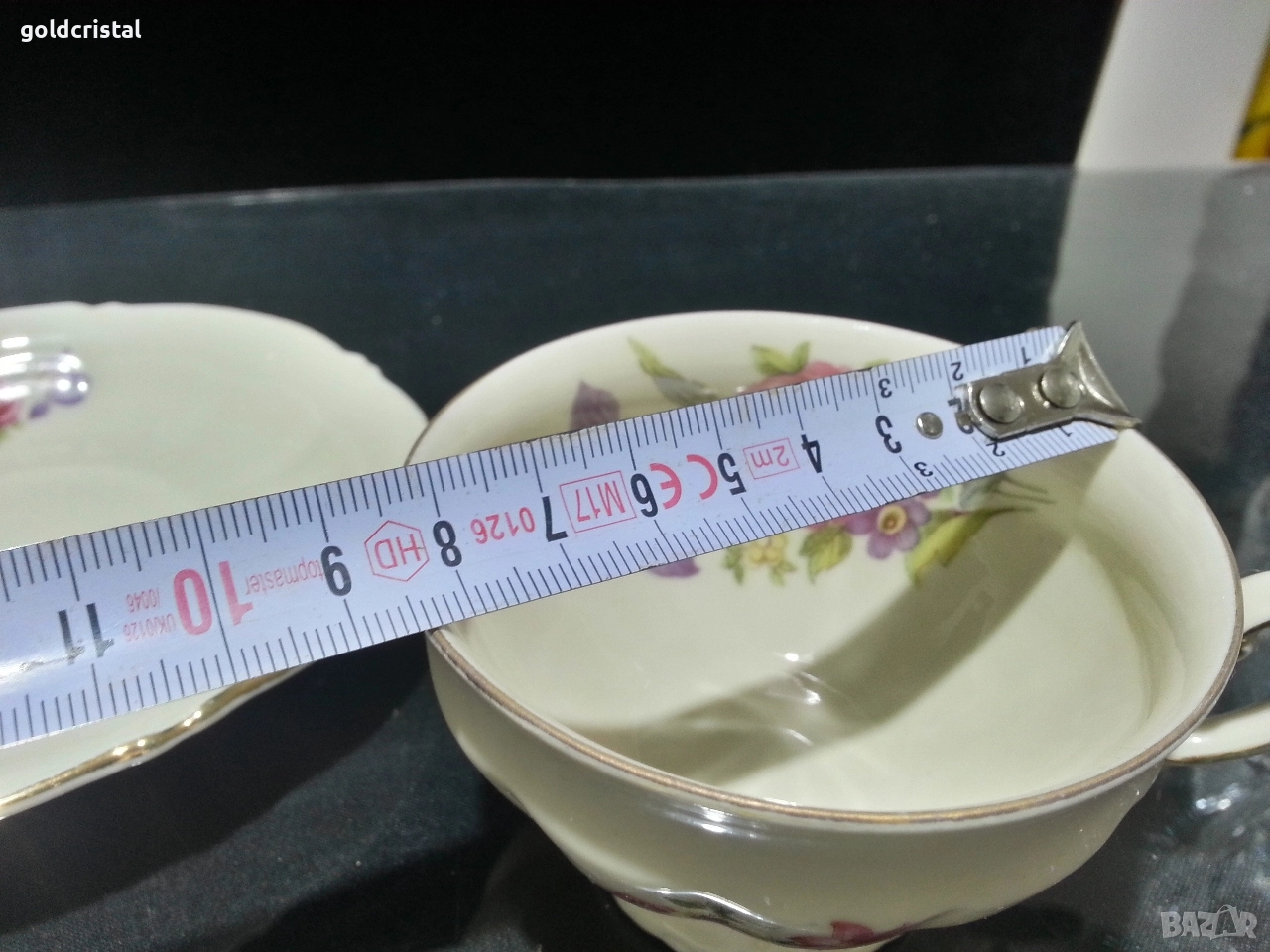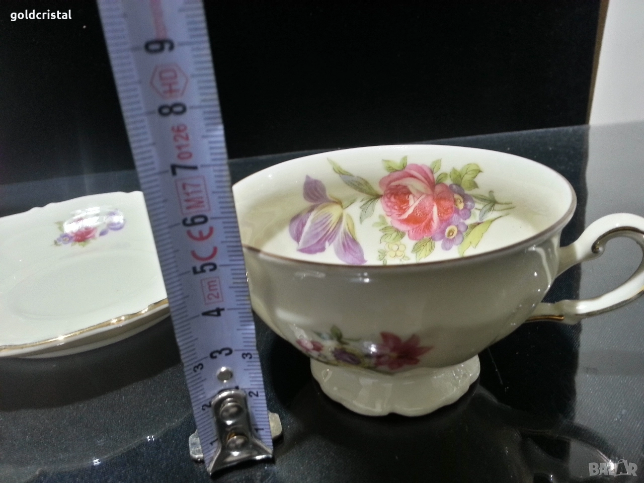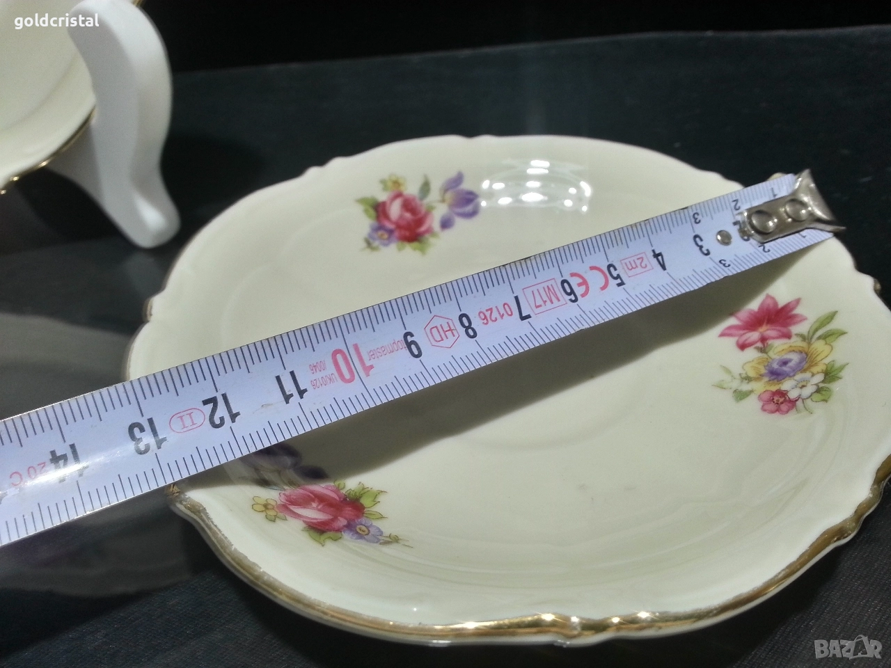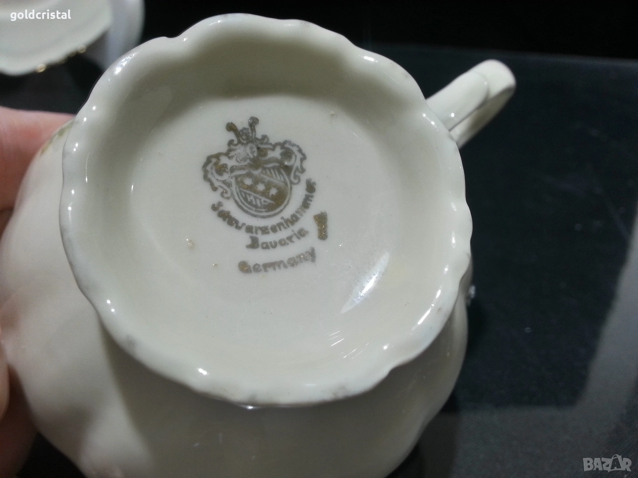 старинен немски порцелан цвят слонова кост чаша за кафе с чинийка и десертна чиния без забележки сервиз комплект сет лот ретро арт декор винтидж колекция стари старинни антикварни предмети обзавеждане за дома и семейството подходящи за подарък за ценители и колекционери