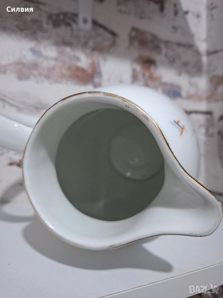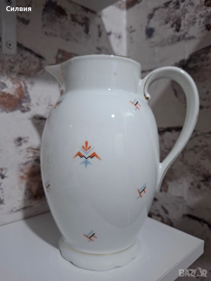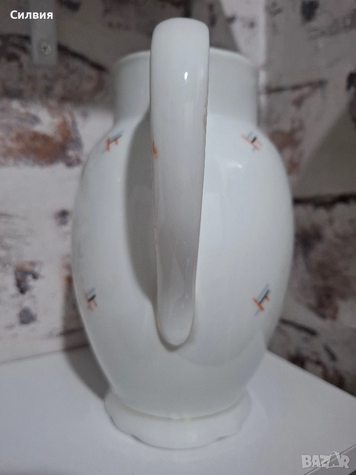 Потопете се в елегантността на ерата Арт Деко с тази кана от Бавария, изработена между 1930 и 1939 г. Нейният вечен дизайн в бели, червени и златни тонове е пленителен, а изящният порцелан и немският произход, гарантират качество и автентичност. Висока- 19см. Вместимост около 1л. Цена 7️⃣0️⃣лв.35,79 € ❥⊱╮🩷☆♪ ░─❥⊱🩷✿L░o░V░e░❥─❥⊱🩷✿⊱╮🩷☆♪ღ