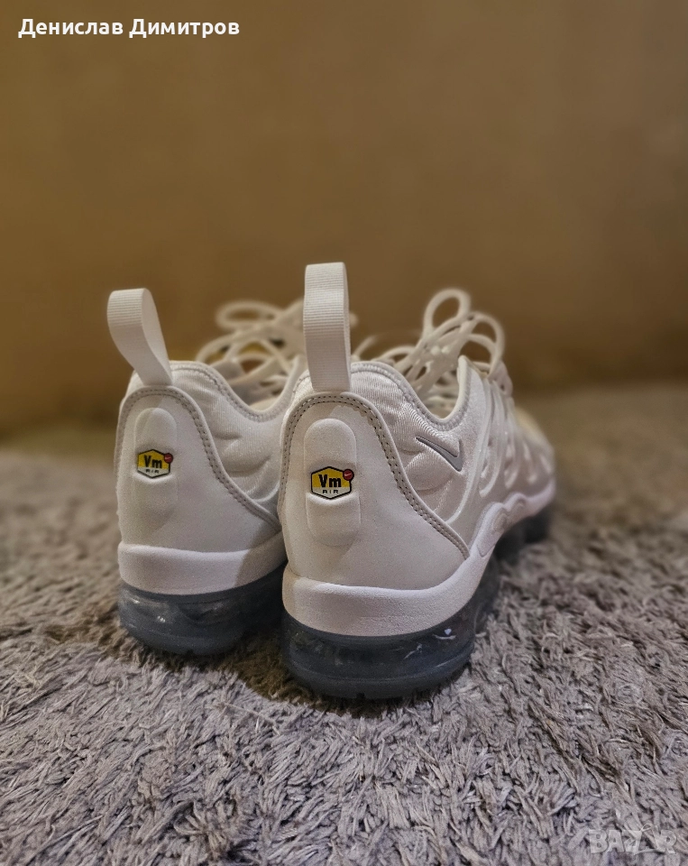 Продавам бели маратонки/сникърси Nike Vapormax plus 100% оригинал. Обувани веднъж и са закупени за 485,00лв. около 250,00 евро.