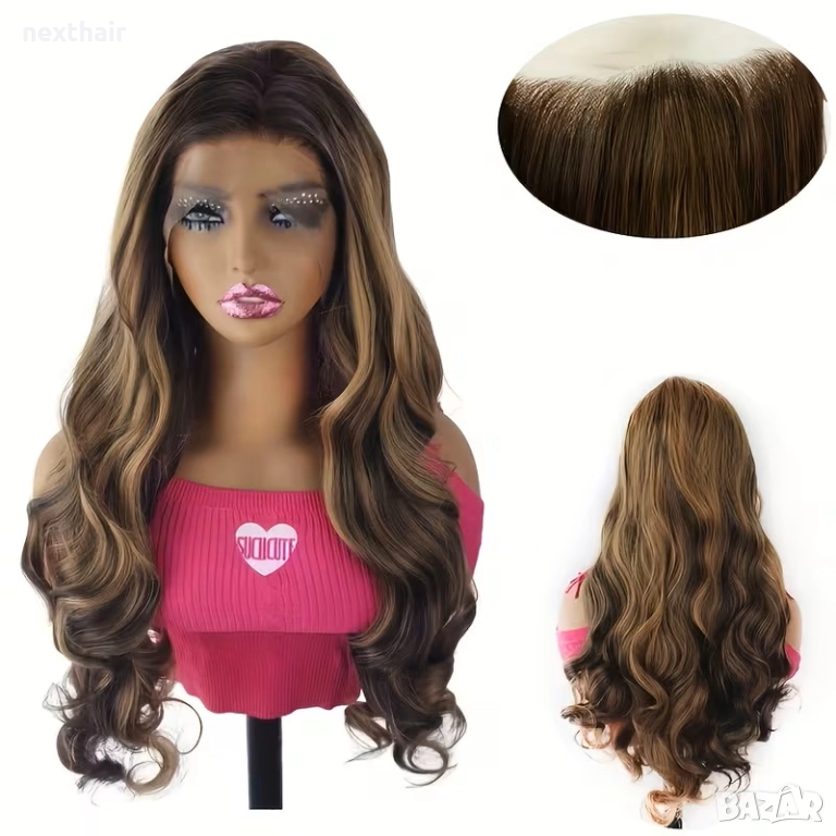 Елегантна и модерна дантелена перука с дължина 70-75 см и красива чуплива структура. Цветът е наситено кафяв с нежни руси кичури за естествен и свеж вид. Перуката разполага с дантелена зона 13х4, която позволява естествена линия на косата и разнообразни възможности за оформяне. Изработена от висококачествени синтетични влакна, мека на допир и лесна за поддръжка. Подходяща за ежедневно носене, специални поводи, фотосесии или сценични изяви.