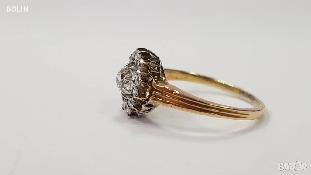 Викториански златен пръстен с диаманти – изящна класика с история и стил. Изработен от 14 карата злато, размер 58, тегло 3.05 гр. Перфектният акцент за всяка дама, ценяща лукс и изтънченост.