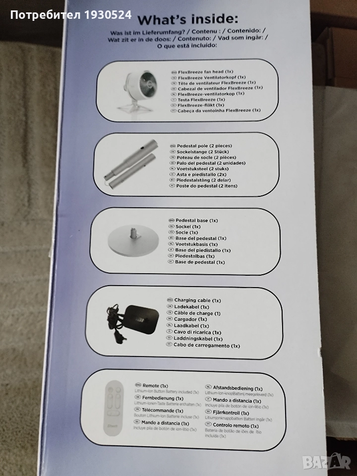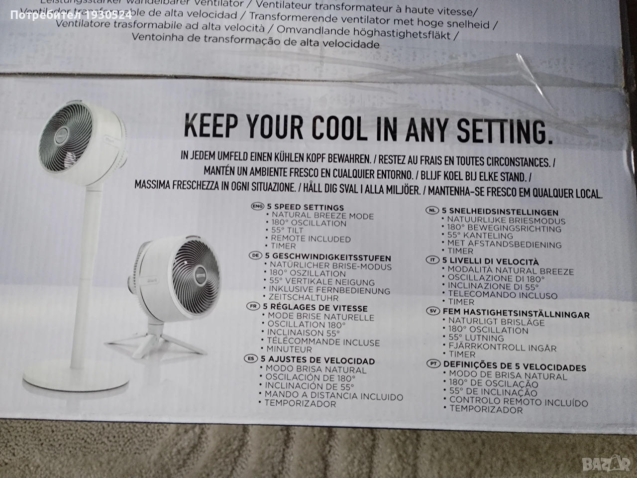 Кутията е разпечатана само за снимките. Вентилаторът е чисто нов, спечелен е от томбола, липсва касова бележка. Намален е от редовната цена на Shark Ninja. Продавам го за 300 лв.