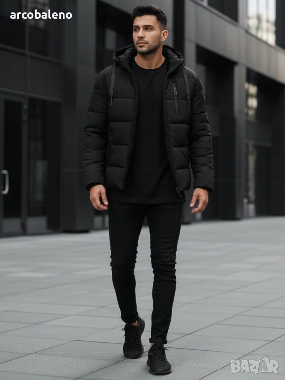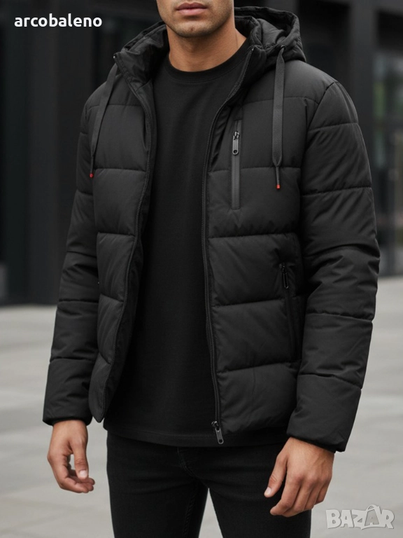 Мъжко зимно ватирано яке с качулка