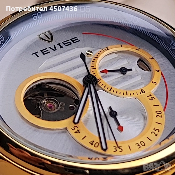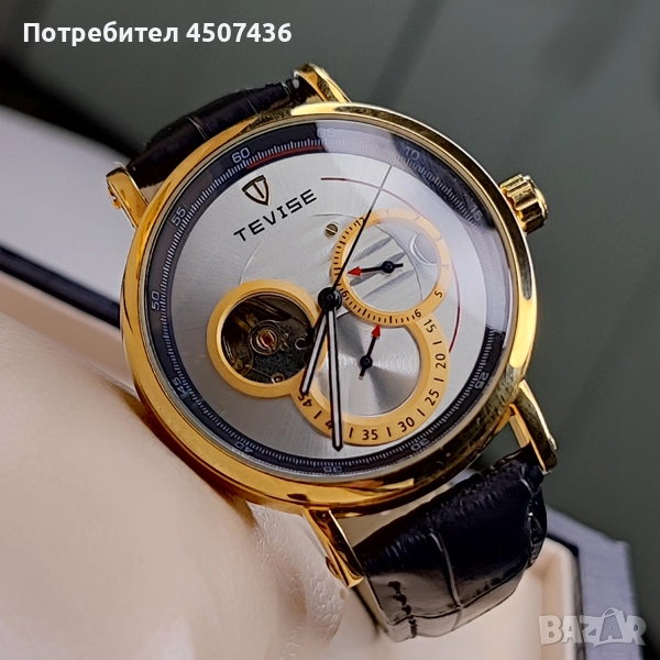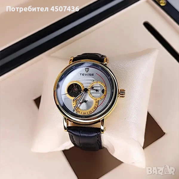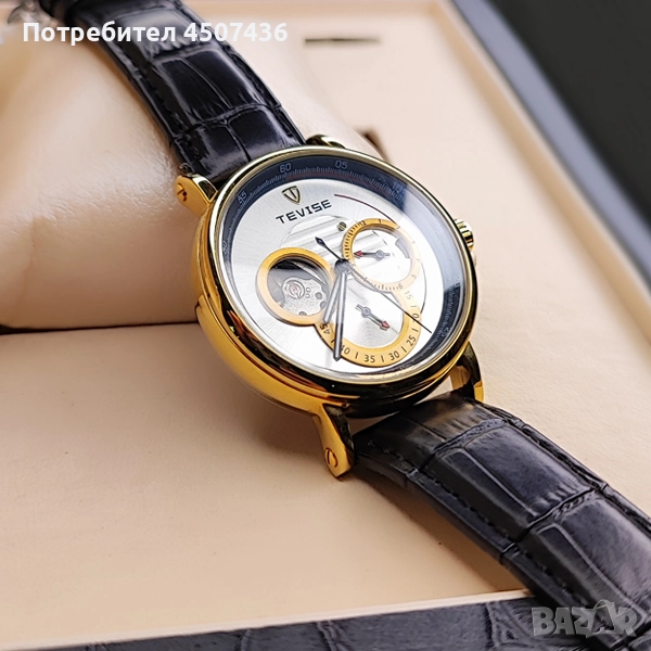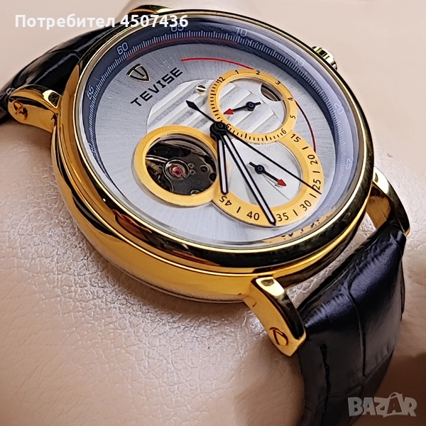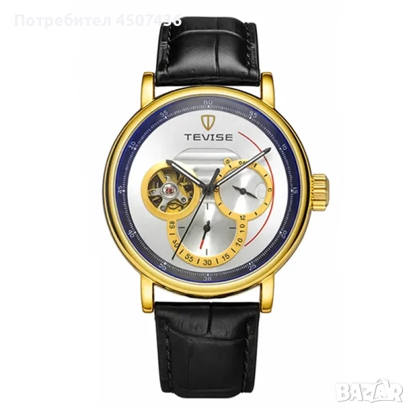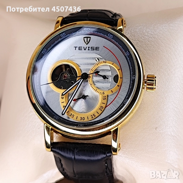 Мъжки автоматичен механичен часовник TEVISE, кръгла сплавена кутия, светещ скелетен циферблат, бизнес стил с каишка от кожа, механична самозалътваща се механика, функция за стопер, дисплей с светещ указател.