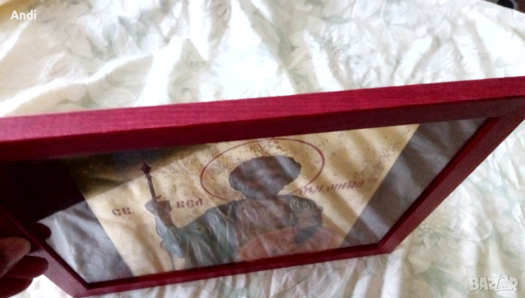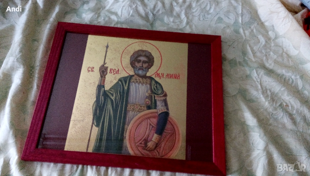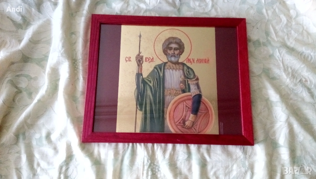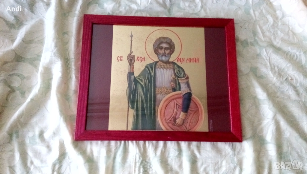 Икона на Свети вкм. Мина, репродукция с дървена рамка и стъкло → Обява 52777998