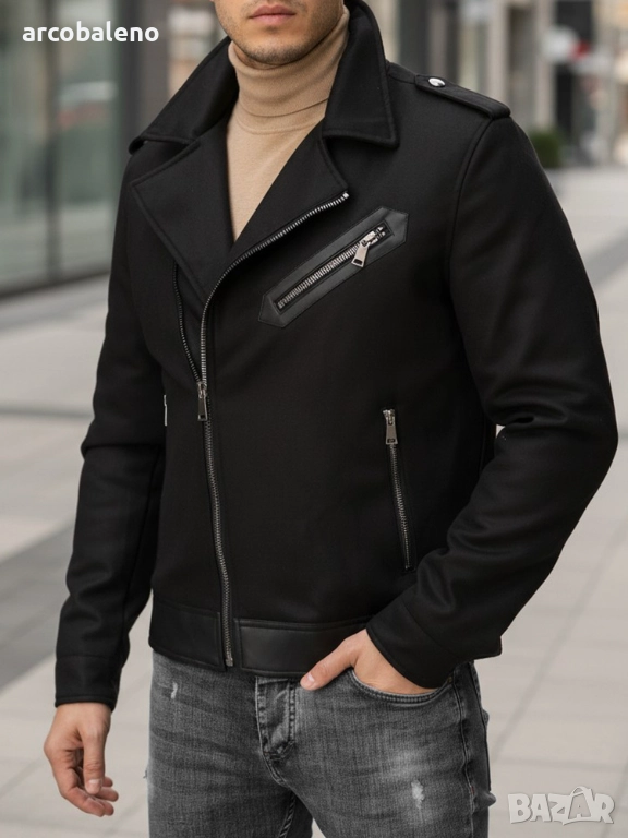 Модерно зимно яке за мъже, които ценят комфорта и стила. Топла кожена подплата и множество джобове - три външни и един вътрешен - правят този модел идеален избор за зимните дни. Отличителни ципове и детайли от изкуствена кожа придават характер и го правят да се откроява в ежедневния стил.