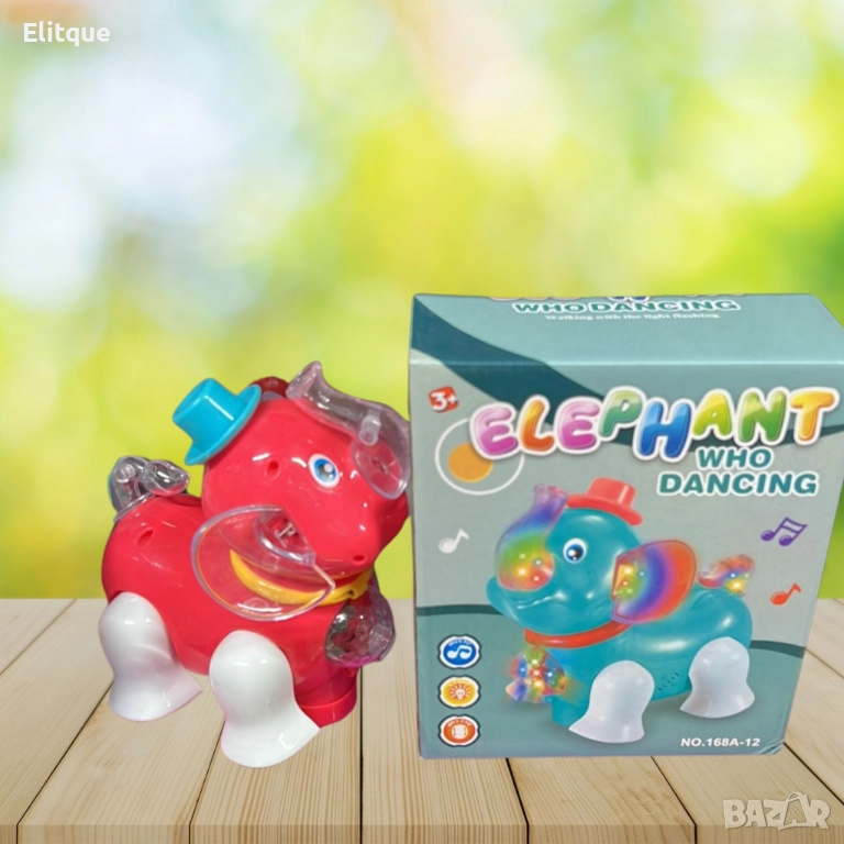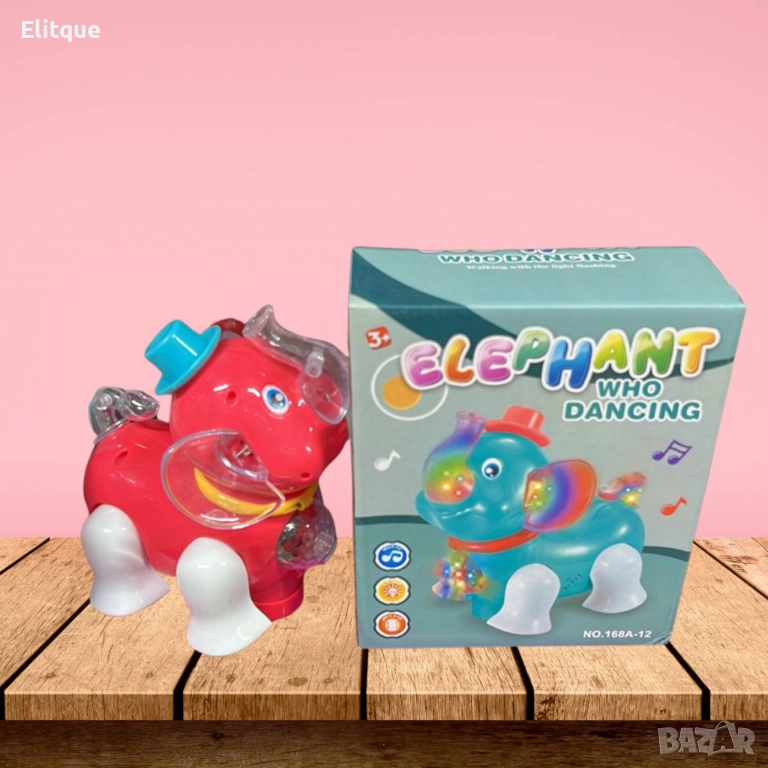 Този интерактивен слон е идеалната играчка за деца, която съчетава забавление и развитие на координацията. Играчката може да танцува, излъчвайки ярки светлини и приятна музика, които задържат вниманието на детето.