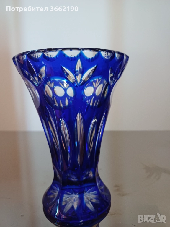 Сет от 2 броя вази от рязан кристална немската фирма "Йошка" с красив кобалтово-син цвят.Отлично състояние. По-високата е 16,5 см., а по-малката е 15,5 см.Част от лична колекция. Моля, разгледайте и другите ми обяви!