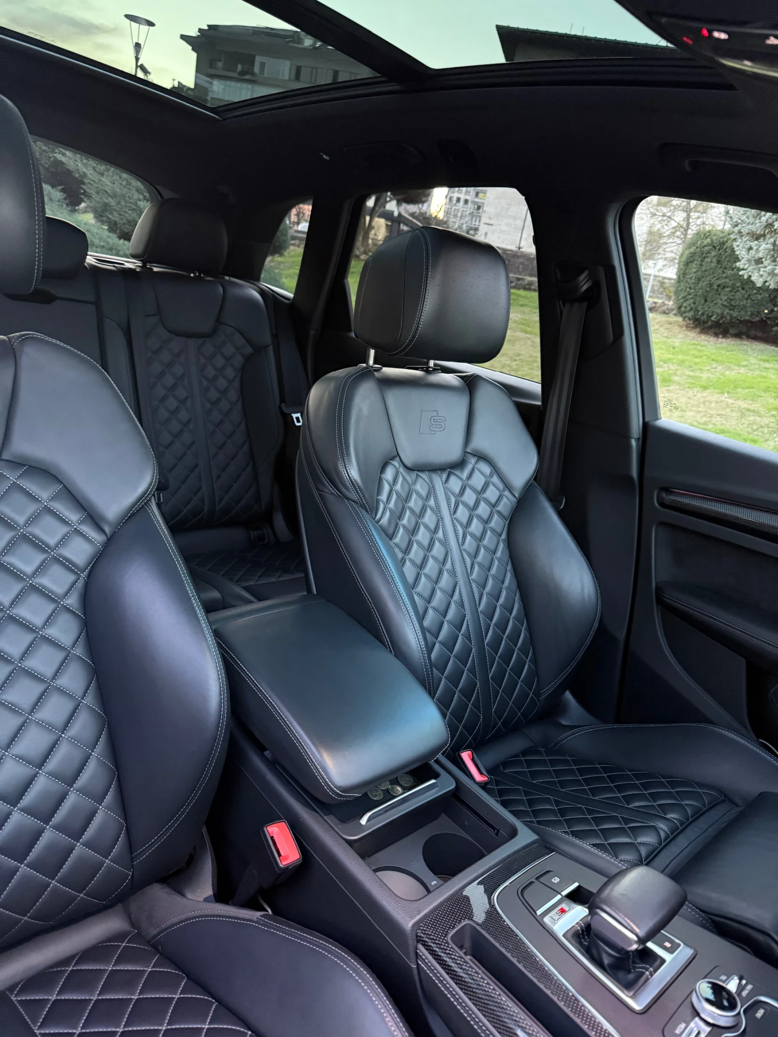 Личен автомобил, втори собственик, обслужван на всеки 15хил км. Току що сменено масло и филтри. Чисто нови зимни и летни гуми. Два комплекта стелки - зимни и летни. До 90. 000км колата е обслужвана в официалния сервиз на Ауди, а после в Лазурит. Платено пълно каско до март 2026г и гражданска до март 2026г. Адаптивно окачване, регулиране на височината с 5 степени/височини. Автомобилът е със спортна изпускателна система Milltek, с възможност за поставяне обратно на оригиналната. Поставено защитно фолио(PPF) на фаровете. UV - защитно фолио Llumar на челното стъкло и предните прозорци със сертификат. Оборудване: Задвижване на всички колела (quattro) S-Audi Exclusive алуминиеви джанти 21 цола S спортни седалки S спортен кожен волан S-стъпки навън S прагове 8-степенна автоматична скоростна кутия Tiptronic Комфортен автоматичен климатроник 3-зонен автоматичен климатроник и отзад Кожен салон Audi Exclusive в черен цвят с щамповане S Интериорни елементи от кожа Централна конзола LED фарове Електрически панорамен шибедах/стъклен покрив Audi Virtual Cockpit (Напълно цифров инструментален клъстер) Адаптивно въздушно окачване 360 градусова камера (околни камери) Озвучителна система Bang and Olufsen Електрическа задна врата, отваряне и затваряне Амбиентно осветление Audi Drive Select Пакет памет Адаптивен круиз контрол с функция Stop and Go (ACC) Audi Active Lane Assist (асистент за поддържане на лентата) Audi Side Assist (асистент за смяна на лентата) Асистент за пътни знаци Асистент при задръстване Асистент за дълги светлини Асистент за ефективност Помощник при стартиране Асистент за спускане по наклон Помощен пакетен тур Градски пакет помощ Отопление на седалките на водача и предния пътник Отопление на седалките на задната седалка отляво и отдясно Контрол на разстоянието при паркиране (PDC) Сензори за паркиране отпред и отзад Мултифункционален / спортен кожен волан в дизайн с 3 спици с функция за превключване Подгряване на волана Keyless-Go (удобен достъп) Функция ECO start stop Бутон за стартиране и спиране на двигателя Автоматична светлина Функция Coming Home / Leaving Home Сензор за дъжд Речева диалогова система Бордови компютър Виртуален кокпит Цифрово радио приемане (DAB) Интерфейс за смартфон Audi Audi Connect Декоративни инкрустации от карбон Тапицерия от черен плат Релси на покрива Затъмнени задни стъкла Климатичен комфорт/топлина/акустичен стъклопакет Комфортен ключ Audi Pre Sense City Спойлер на покрива Педали и поставка за крачета от неръждаема стомана Корпус на външното огледало в карбонов вид Електрически стъклоповдигач за предно и задно Електрически регулируеми външни огледала, сгъваеми и отопляеми Електрически регулируеми седалки с памет Електрически регулируеми лумбални опори Електрическа ръчна спирачка Електрическа ключалка за безопасност на децата Електрически блокаж на диференциала (EDS) Електрически регулируем волан, вътрешни и външни огледала с автоматично затъмняване LED дневни светлини LED динамични индикатори LED задни светлини USB MP3 SD CD DVD Bluetooth Audi Connect спешно повикване Музикален интерфейс на Audi AUX IN Адаптер за контакт 12 V за Apple устройства с Lightning контакт Контрол на сцеплението Контрол на налягането в гумите Въздушни възглавници Централен подлакътник отпред и отзад Закрепване за детска седалка (Isofix) Капак на товарното отделение