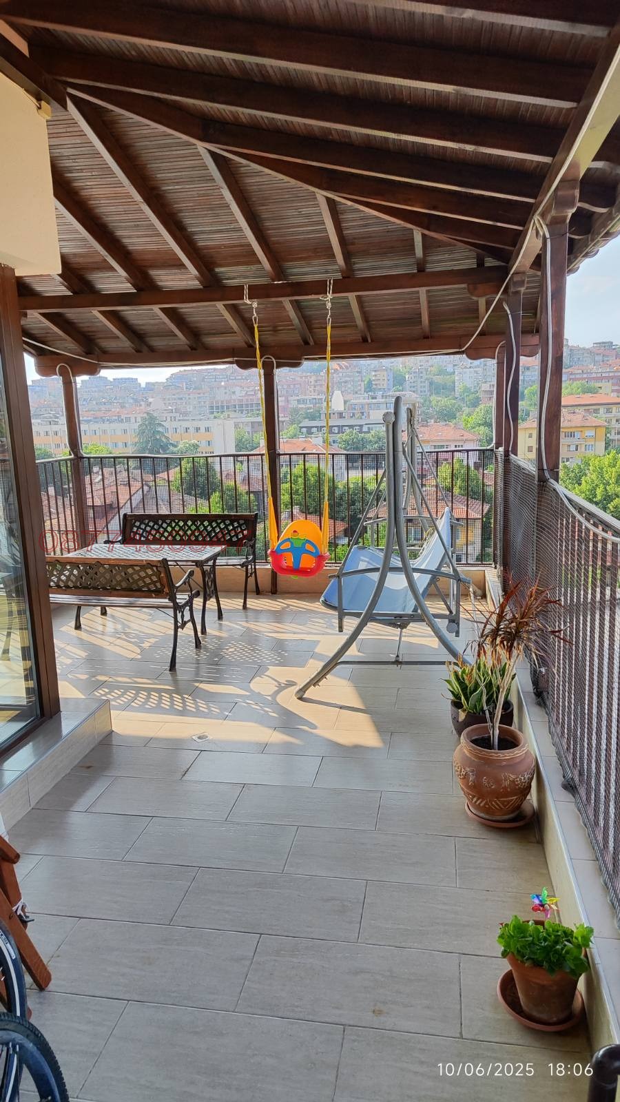 Панорамна тераса с прекрасна гледка (46,04 кв.м.), опасваща целия апартамент и с възможност за усвояване на част от нея с цел изграждане на още една стая, гледаща на запад (13-14 кв.м.).