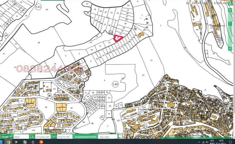 2000 кв.м, Регулация, Ток, Предлагаме за продажба поземлен имот в местност Картала , гр. Велико Търново с площ 2000 кв.м и действащ ПУП за промяна предназначението му за жилищно застрояване. Градоустройствените параметри са: - Плътност на застрояване (П застр.) = маx 60% (обща застроена площ на сградите маx 1200 кв.м) - Коефициент на интензивност (К инт.) = 2.0 (обща разгъната застроена площ на сградите max 4000 кв.м) Размерите и формата на имота позволяват голямо разнообразие в застрояването. Разположен е на път с лице 64м на югоизток, на 200м от съществуващата застройка на кв. Картала . Граничи и с неасфалтов път с лице 56м на югозапад. Имотът е с отлична панорамна гладка. Има разрешение за строеж на ограда. По пътя е задвижена процедура за преминаване на водопровод и ел.захранване. Предлага се директно от собственик. , тел.: 0888244045