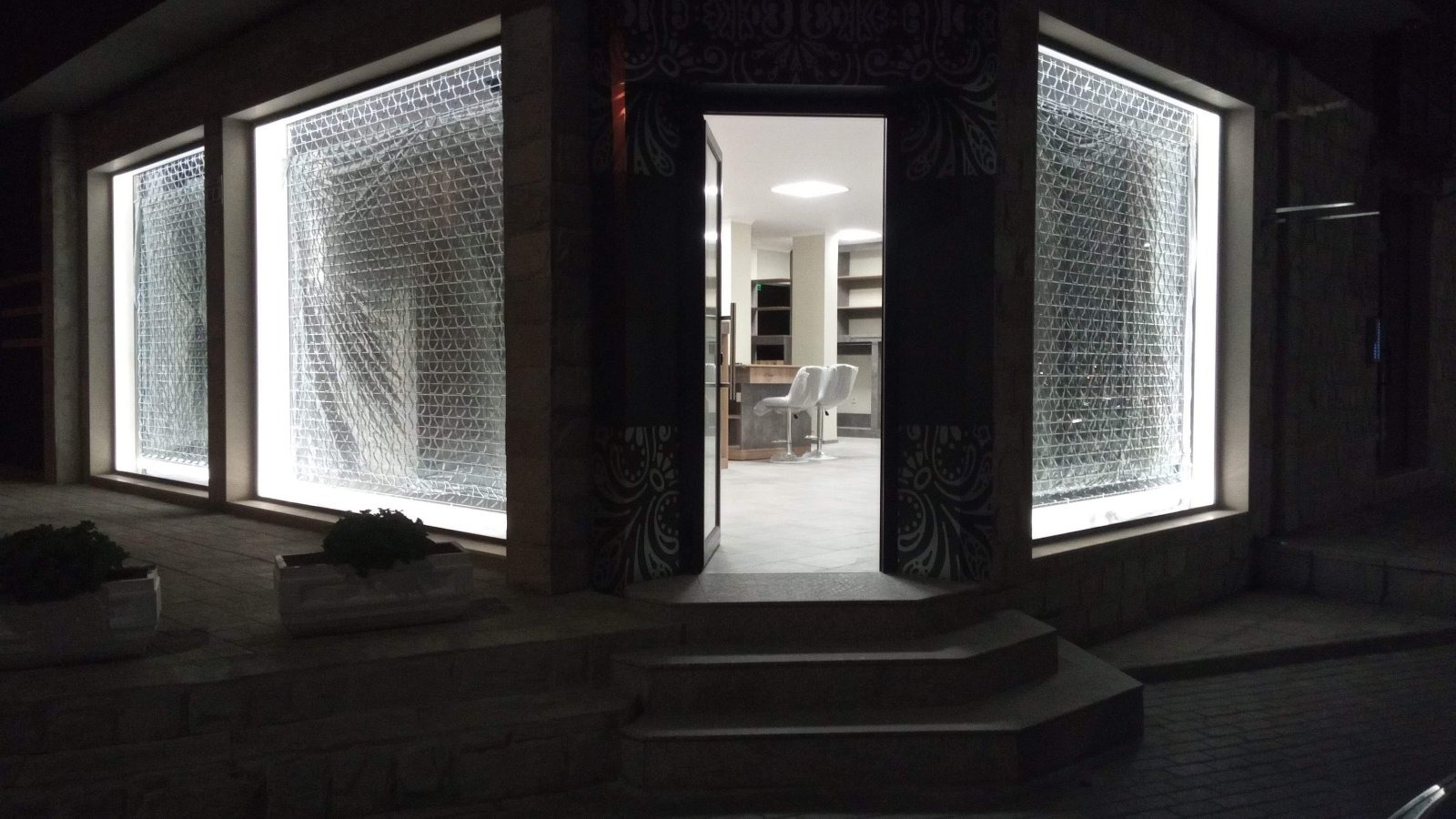 - мострен шоурум на магазин за климатици, интериорни/входни врати и ламинати, тапети и т.н.