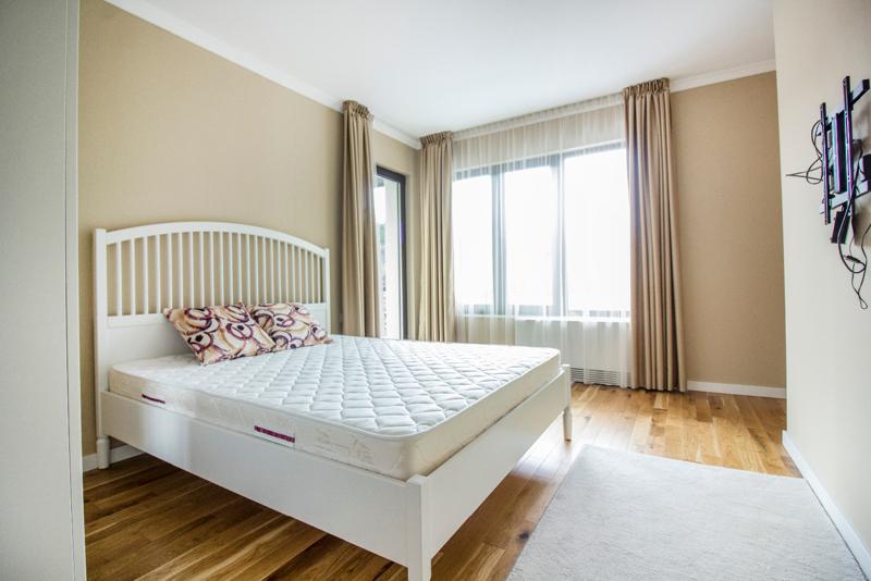 Второ ниво - родителска стая с прилежаща баня и дрешник, две стаи, втора баня с тоалетна, балкон.
