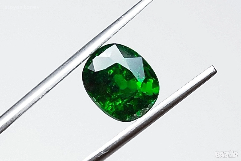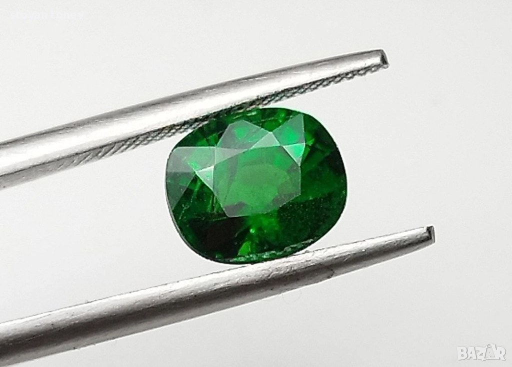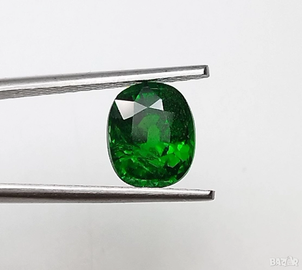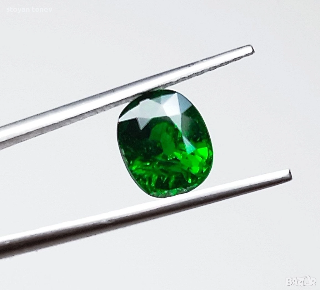 Естествен цаворит с тегло 1.38кт. и произход Кения. Чистота SI с минимални видими включения. Цвета е топ зелено за вида. Форма овал с размери: 7 x 5.9 x 4.3 mm.