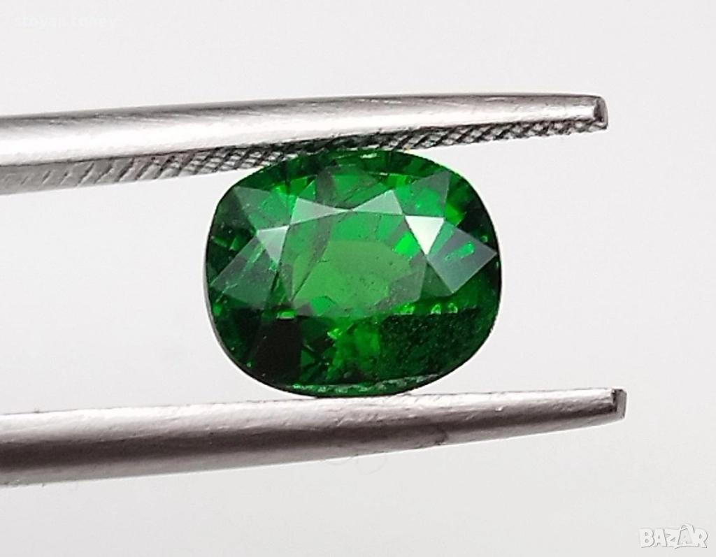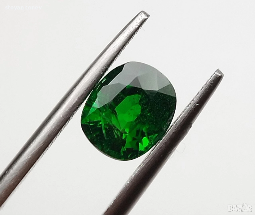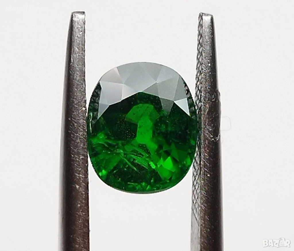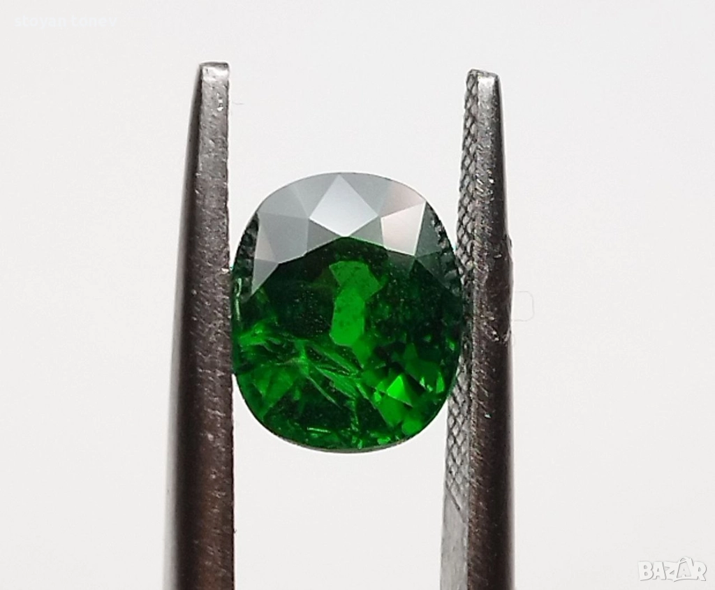 Естествен цаворит с тегло 1.38кт. и произход Кения. Чистота SI с минимални видими включения. Цвета е топ зелено за вида. Форма овал с размери: 7 x 5.9 x 4.3 mm.