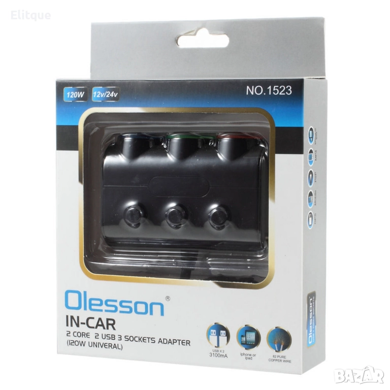 Мултифункционално зарядно за кола -  2 USB порта и 3 гнезда за запалка – 120W мощност и стилен дизай, снимка 1 - Други стоки за дома - 52787104 Мултифункционално зарядно за кола -  2 USB порта и 3 гнезда за запалка – 120W мощност и стилен дизай, снимка 2 - Други стоки за дома - 52787104 Мултифункционално зарядно за кола -  2 USB порта и 3 гнезда за запалка – 120W мощност и стилен дизай, снимка 3 - Други стоки за дома - 52787104 Мултифункционално зарядно за кола -  2 USB порта и 3 гнезда за запалка – 120W мощност и стилен дизай, снимка 4 - Други стоки за дома - 52787104 Мултифункционално зарядно за кола -  2 USB порта и 3 гнезда за запалка – 120W мощност и стилен дизай, снимка 5 - Други стоки за дома - 52787104 Мултифункционално зарядно за кола -  2 USB порта и 3 гнезда за запалка – 120W мощност и стилен дизай, снимка 6 - Други стоки за дома - 52787104 1/6