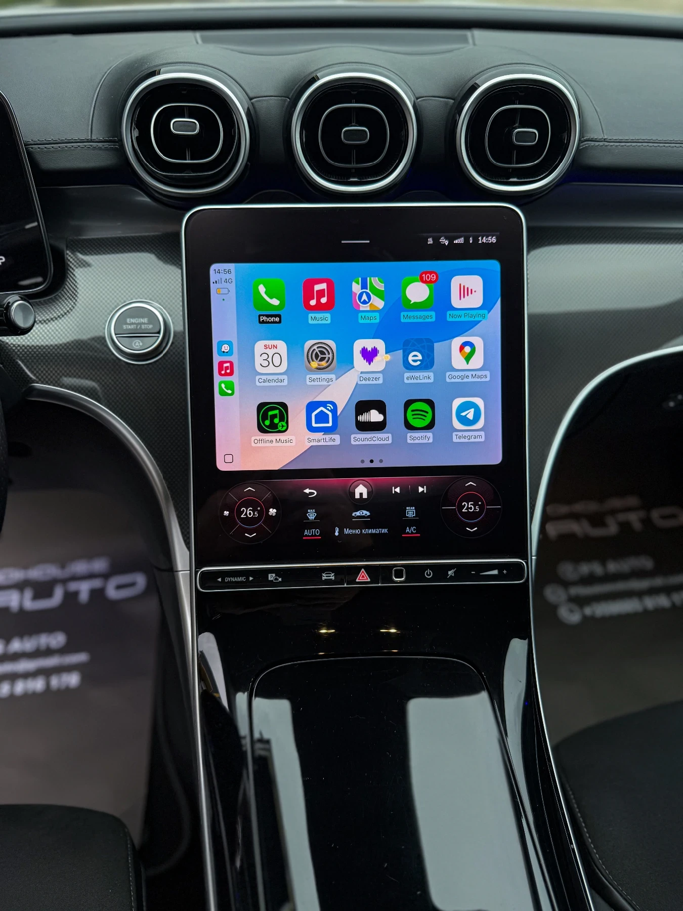 Mercedes-Benz C 200 Бензин ! ! ! AMG W206 автомобил от най-новото поколение на C-класата, закупен от официално представителство на Mercedes в Германия. Напълно доказуем и реален пробег от 49 000 км, налични сервизни документи, история и 2 оригинални ключа. Автомобилът е без никакви забележки, в състояние като нов, с фабричен AMG пакет, разширен кожен интериор и максимално ниво на оборудване за модела. AMG ПАКЕТ екстериор и интериор Автомобилът е с фабричен AMG Line пакет, включващ спортни брони, агресивни прагове, AMG радиаторна решетка и 19-цолови AMG джанти. Допълнително е оборудван с Panamericana предна решетка по-спортна и атрактивна решетка тип AMG GT, която придава много по-мощно и премиум излъчване. Отзад автомобилът е с C63 AMG дифузьор, който подчертава спортния стил, подобрява аеродинамиката и придава визия, близка до топ модела на серията. Интериорът е оборудван със спортен AMG волан с плоско дъно и сензорни бутони за управление, спортни седалки, декоративни елементи с алуминиев или карбонов ефект и черен небесен таван. Разширен кожен пакет ръчни шевове Автомобилът е с разширен пакет от премиум кожа: кожено табло с ръчни декоративни шевове кожени кори на вратите също със шевове висококачествен кожен салон с перфорации по-мека и по-луксозна структура на материала Асистенти и системи за безопасност Мъртва зона в огледалата (Blind Spot Assist) Системата следи зоните от двете страни на автомобила чрез радар. При наличие на автомобил в мъртвата зона се активира светлинен индикатор в огледалото. При опит за престрояване автомобилът предупреждава със звуков сигнал, визуален индикатор и вибрация на волана. DISTRONIC адаптивен автопилот Поддържа дистанция, ускорява и забавя автоматично според трафика. Работи изключително плавно и е идеална функция за магистрали и градско движение. Разпознаване на пътни знаци Камери отпред и отзад засичат ограничения на скоростта, забранителни знаци и предупреждения. Информацията се визуализира на дигиталното табло и мултимедията. Парктроници отпред и отзад С висока чувствителност, графично изобразяване и предупреждения при минимални разстояния. Самопаркиране Active Parking Assist Автомобилът сам намира подходящо място за паркиране. Маневрите се извършват напълно автоматично завъртане на волана, газ и спирачка. Шофьорът само потвърждава действието. Подходящо както за успоредно, така и за перпендикулярно паркиране. Интериор и комфорт Подгряване на предните седалки Подгряване на задните седалки Подгряване на AMG волана Електрически огледала с прибиране Безжично зарядно за телефон Keyless Go безключов достъп и старт Двузонов климатроник Thermatic Комфортни седалки с разширени настройки Мултимедия, навигация и свързаност Голяма навигация (най-високата версия за W206) голям вертикален дисплей 3D карти бърз MBUX интерфейс вътрешна памет Apple CarPlay и Android Auto безжично онлайн функции и актуализации Дигитално табло Virtual Cockpit 12. 3-инчов напълно дигитален инструментален панел с различни теми: Sport, Supersport, Classic, Navigation View и др. Изобразява навигация, камери, текущи знаци, асистенти, предупреждения, динамика на автомобила, разход и пълен контрол върху системите. Амбиентно осветление мултицветно Разполага с десетки цветове, двойни цветови комбинации и динамични режими. Осветени са вратите, таблото, централната конзола, подлакътниците и зоната за краката. Може да се синхронизира с муз