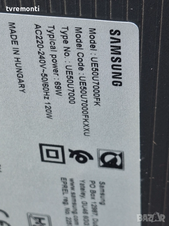 POWER SUPPLY BN44-01336A BN4401336A за 50-инчов телевизор SAMSUNG Модел UE50U7000F, с дисплей CY-BF050HGNV7H Платката е използвана, но гарантирано работеща, демонтирана от телевизор със счупен дисплей. Тествана е от нашия техник.