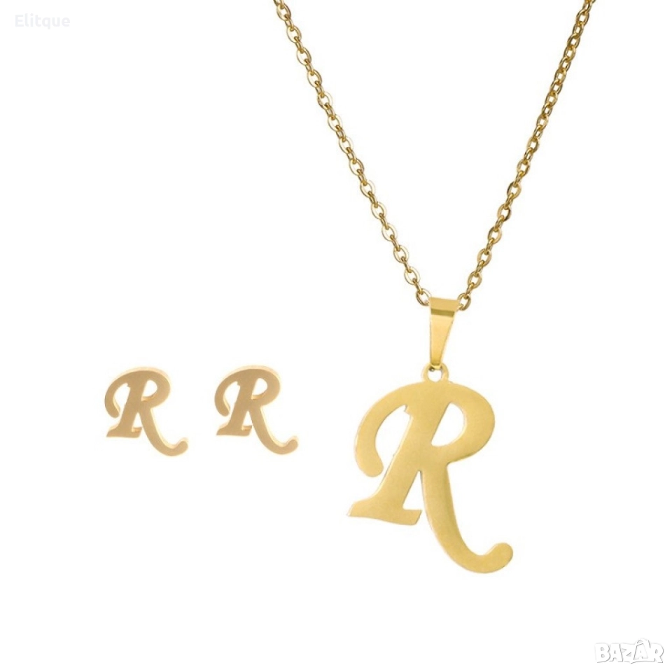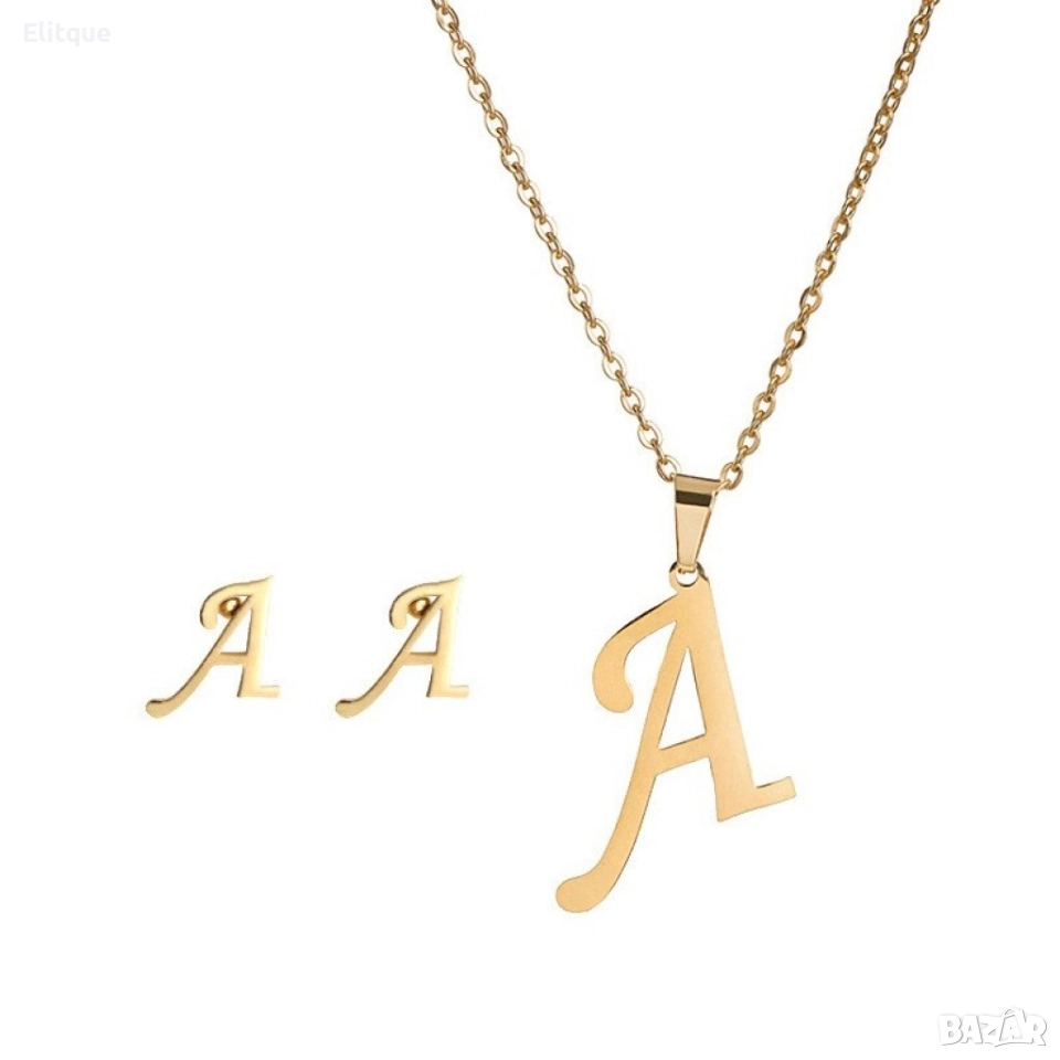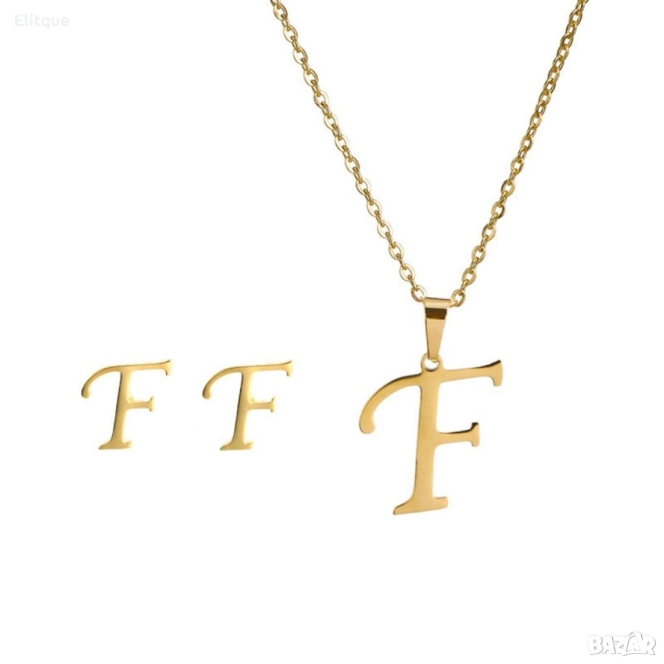 Дамско колие със златно покритие - висулка буква и две букви обеци. Буквите са латински! → Обява 52787628