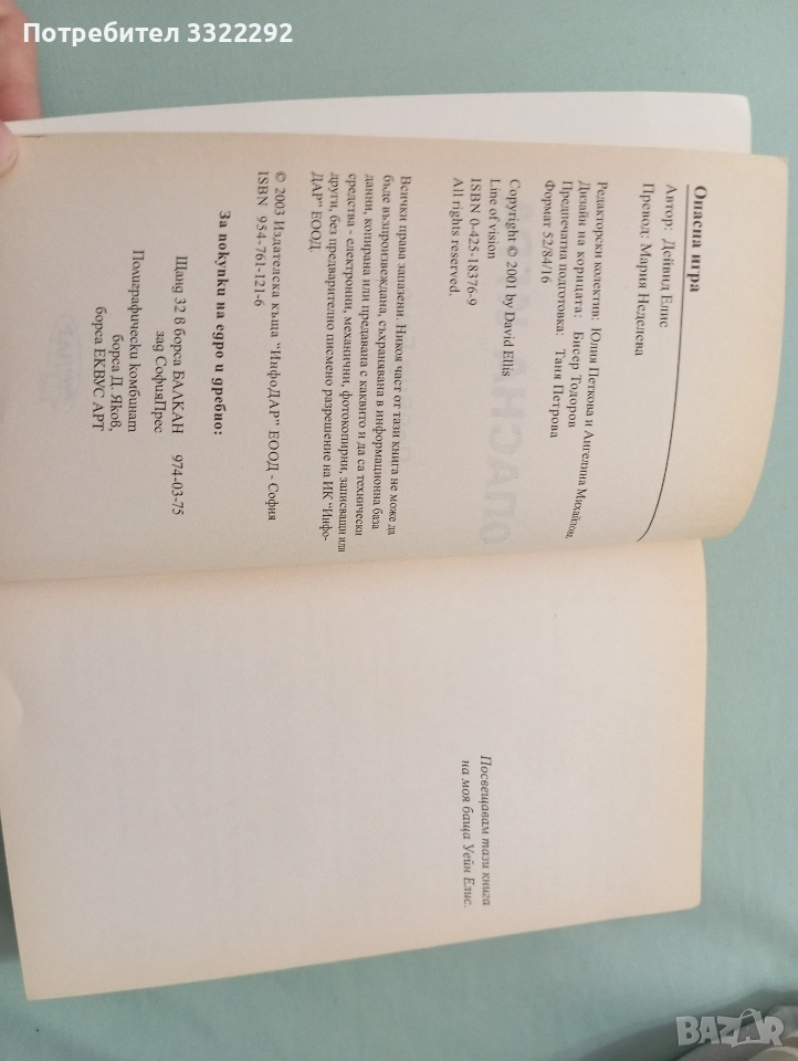 Дейвид Елис Опасна игра , снимка 1 - Художествена литература - 52787956 Дейвид Елис Опасна игра , снимка 2 - Художествена литература - 52787956 Дейвид Елис Опасна игра , снимка 3 - Художествена литература - 52787956 1/3