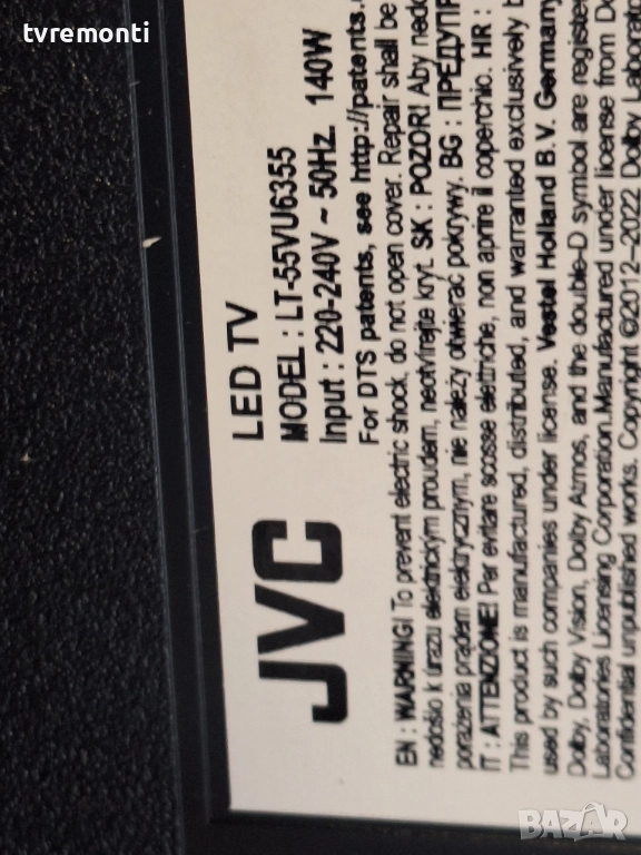 Платка 17IPS72 за 55-инчов телевизор JVC Модел  LT-55VU6355, с дисплей VES550QNDB-N1-Z01 → Обява 52787980