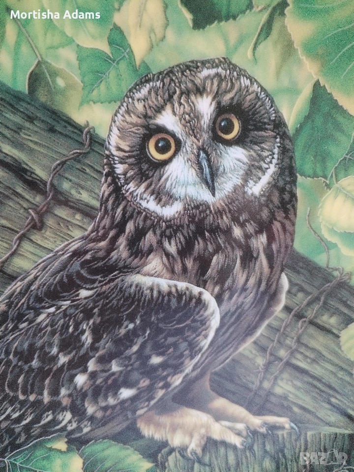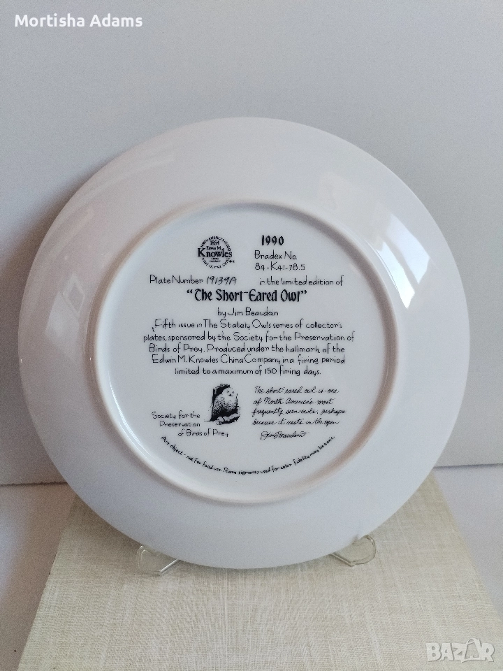 🌿 Колекционерска декоративна чиния "Късоухата сова", лимитирана серия от Jim Beaudoin, 5- ти брой от поредицата "Величествените сови". Диаметър 22см., отлично състояние, със сертификат.