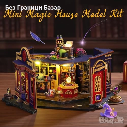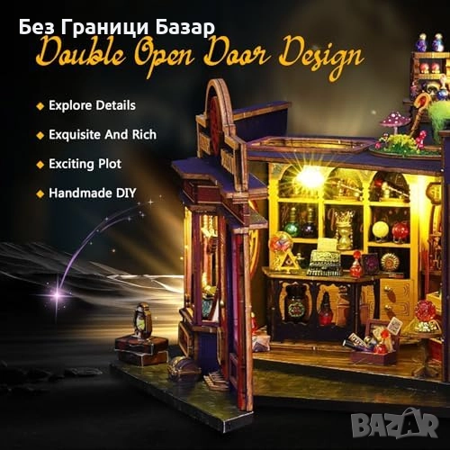 Миниатюрен DIY комплект за създаване на магическа къща с отварящи се врати и LED осветление
