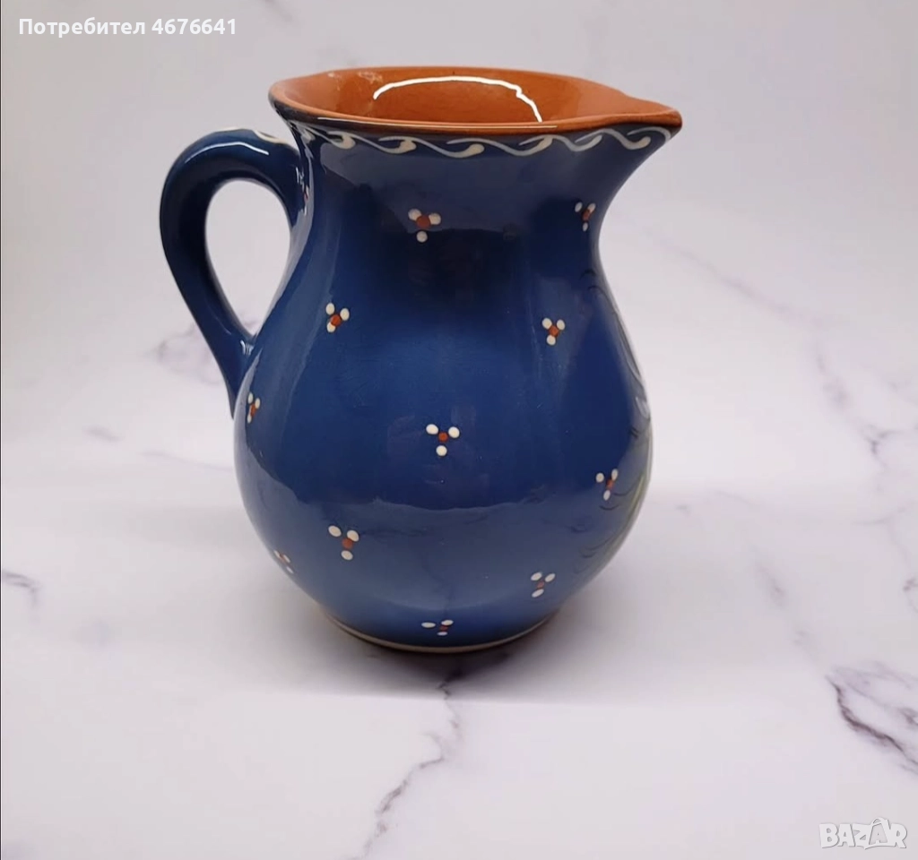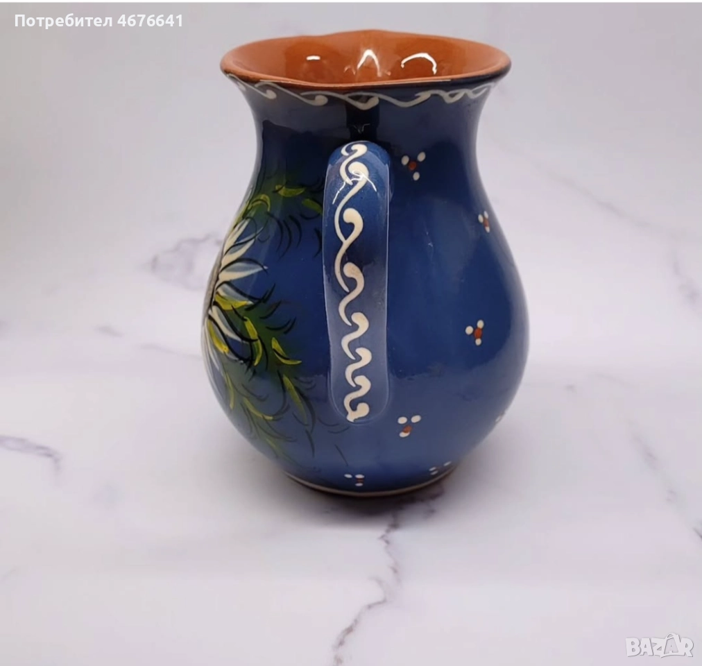 Ръчно рисувана винтидж керамична кана