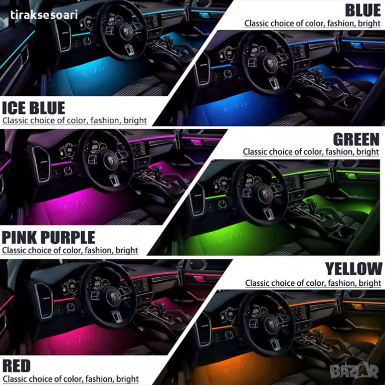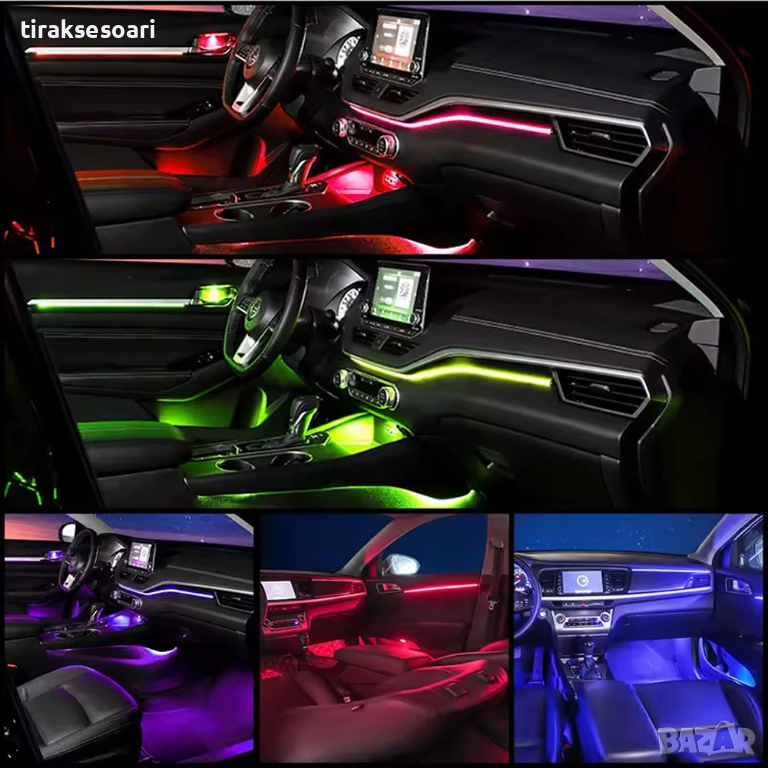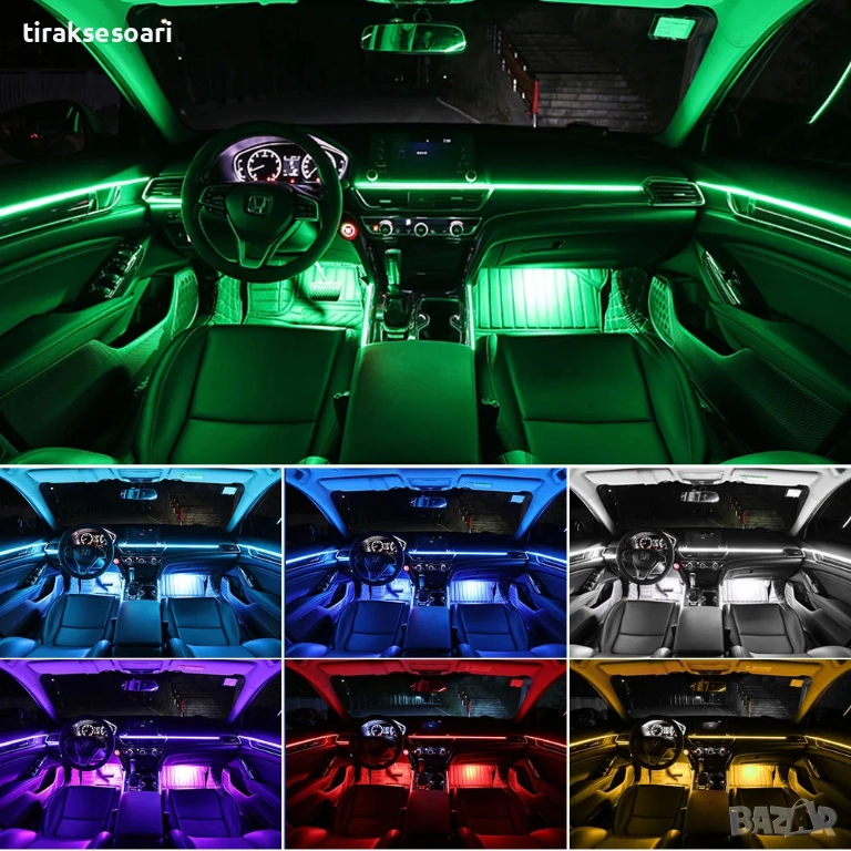 rgb осветление кола, интериорно лед осветление, led ленти автомобил, app rgb light, 6in1 led, 10in1 led, 14in1 interior lights, 18in1 interior lights, автомобилно амбиентно осветление, музикално лед осветление, 12v rgb ленти