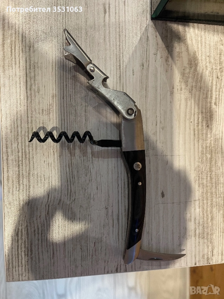 Отварачката е запазена и напълно функционална. Не е евтин сувенир, а инструмент за хора, които ценят виното и качествените аксесоари.
