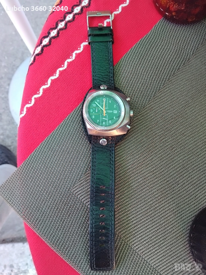 Часовника няма забележки, всичко работи сменя датата коректно. Каишка от естествена кожа. Цената може да се коментира!