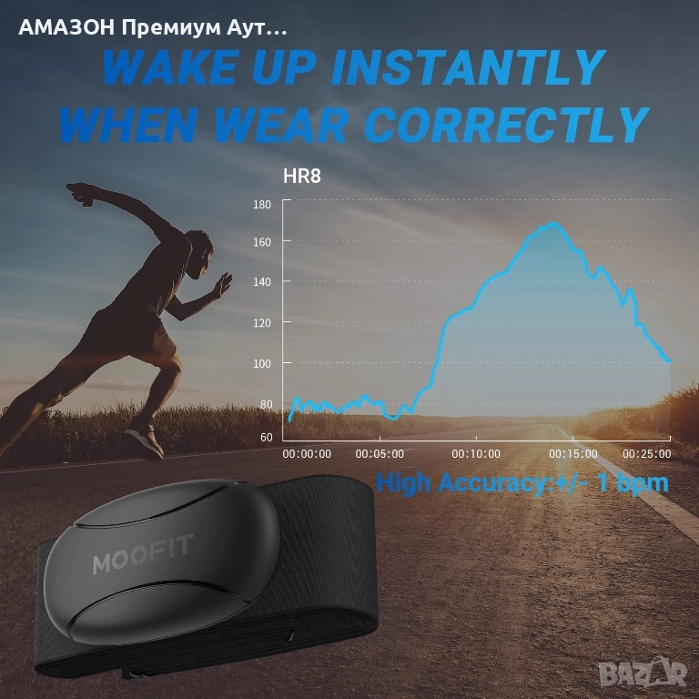 MOOFIT HR8 Монитор за сърдечен ритъм, Bluetooth 5.0/ANT+/нагръдник/данни в реално време,водоустойчив