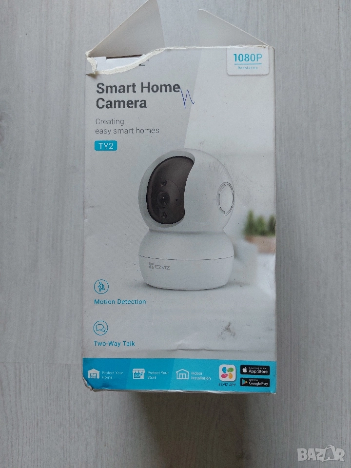 Продавам функционална смарт камера за домашно видеонаблюдение EZVIZ модел CS-TY2. Отличен избор за повишаване на сигурността в дома, офиса, или за наблюдение на близки и домашни любимци, с пълен контрол през мобилно приложение.