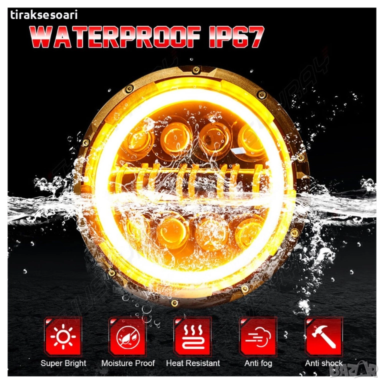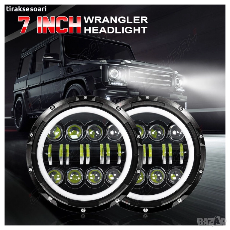7 инча led фар, универсален led фар, 7 inch led headlight, led фар за niva, jeep wrangler led фар, offroad led фар, led фар с drl и мигач