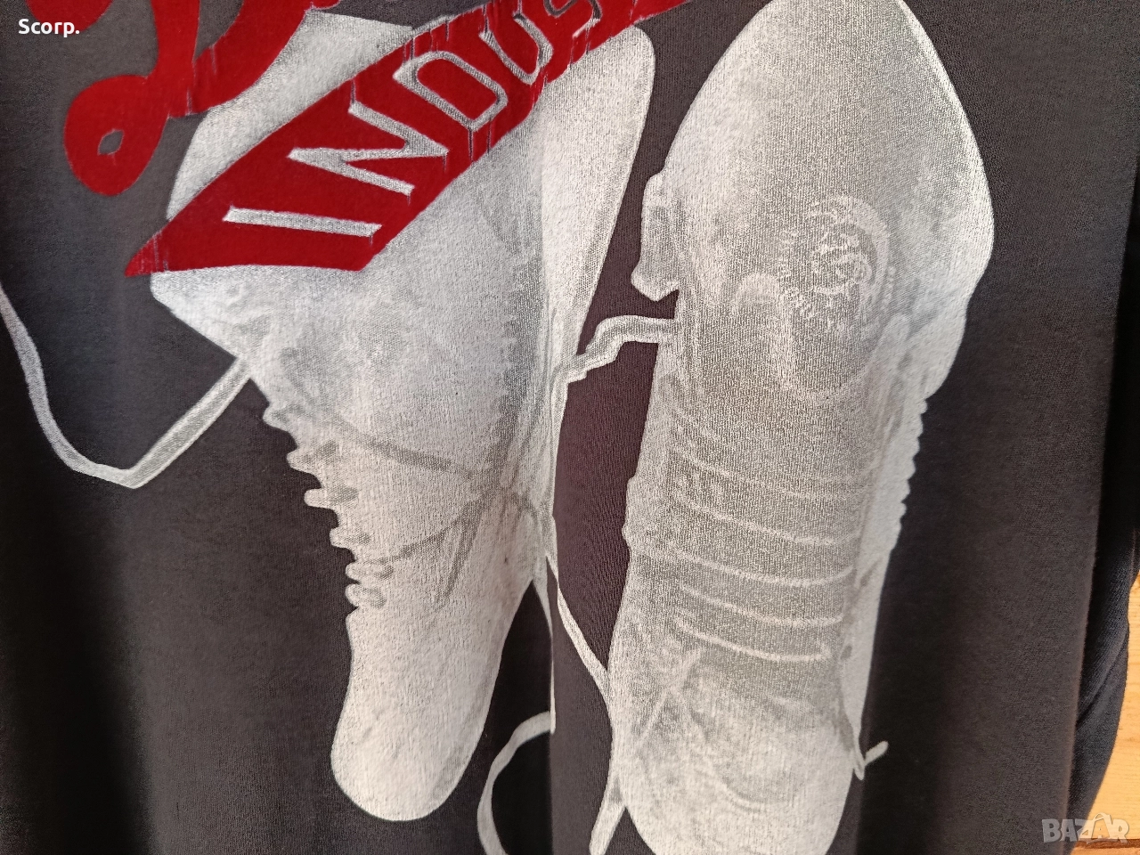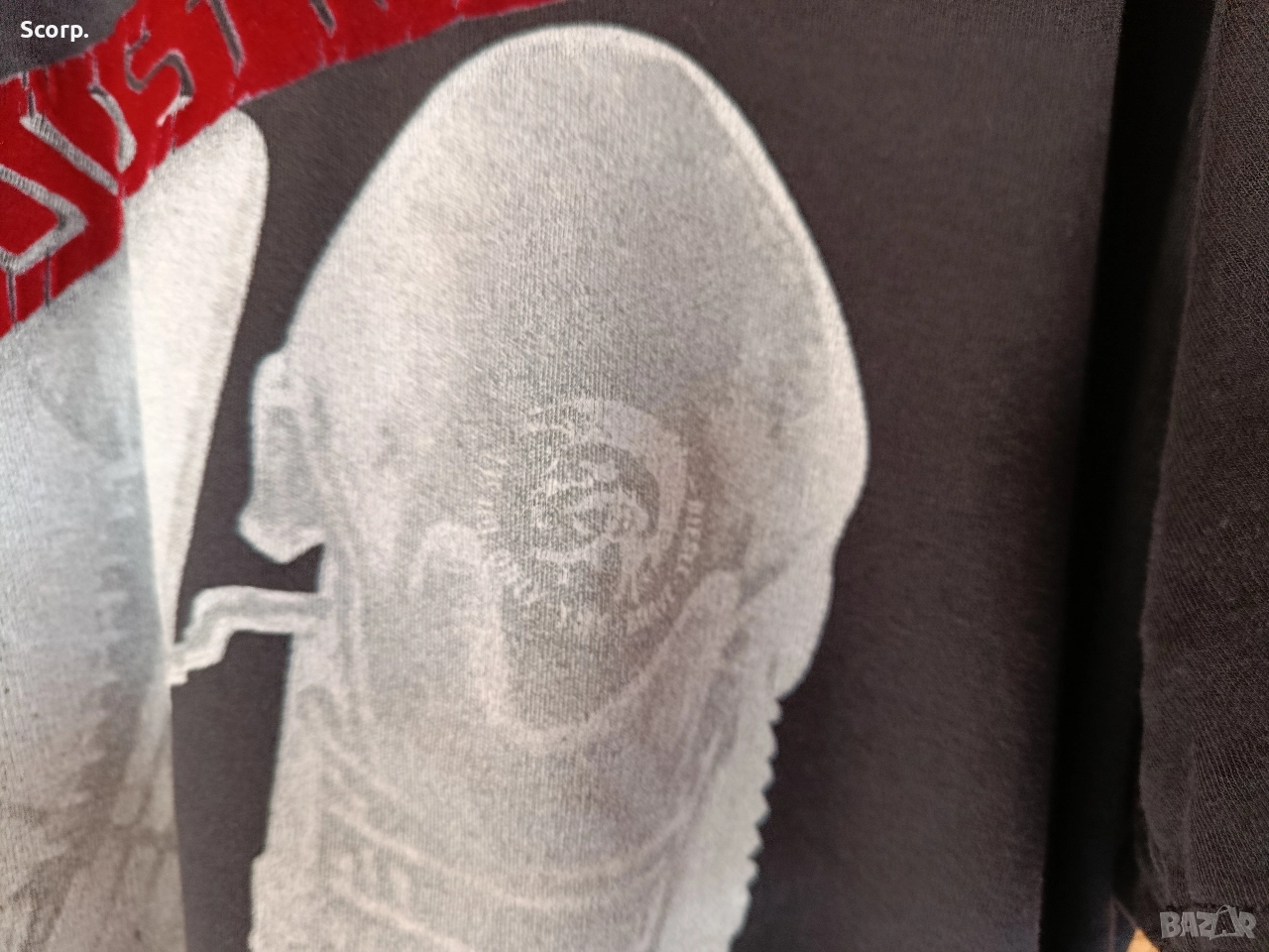 Състояние на продукта:6,5/10.Тениската е в добро състояние.Някои части на графичният принт са леко изтрити.Тениската е идеално за добавяне към вашата колекция.Тениската има няколко малки леки петна и едва забележими прободени дупки,които не са сериозни и не променят качеството и външния вид на тениската и не пречат на носенето ѝ.