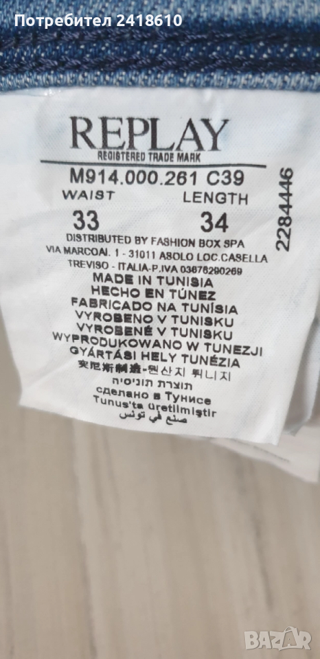 Replay Milano Anbass Hyperflex Stretch Slim Fit Mens Size 33/34 ОРИГИНАЛ Мъжки Дънки!