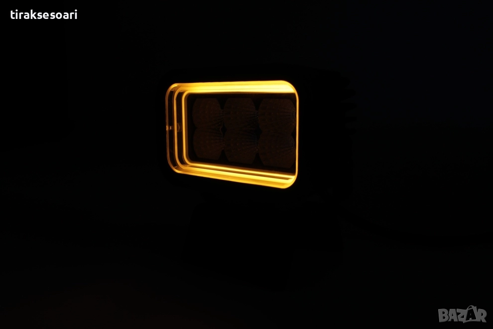 Висококачествен 42W LED халоген с разпръсната (FLOOD) светлина, комбиниращ мощно работно осветление със силно видима двуцветна DRL/габаритна светлина – жълта и червена. Компактният и здрав корпус го прави изключително подходящ за професионална употреба при тежки условия. Осигурява равномерно осветяване, висока надеждност и отлична видимост.